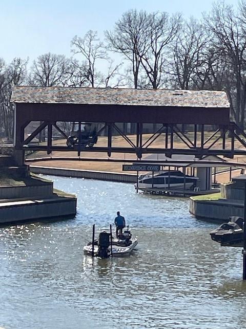 The walkout basement ceilings are 9' and offers two additional bedrooms connected by a Jack-and-Jill bathroom, a second living area, beverage bar and a covered patio that leads down to a private boat dock with one slip and generous decking for outdoor furniture. Practical amenities include an oversized garage with a single large door and a dedicated golf cart space. Thoughtful finishes throughout—quartz counters, dramatic lighting, luxury wood like laminate floors and carefully considered indoor-outdoor connections—make this home a seamless blend of sophisticated design and lakefront lifestyle.