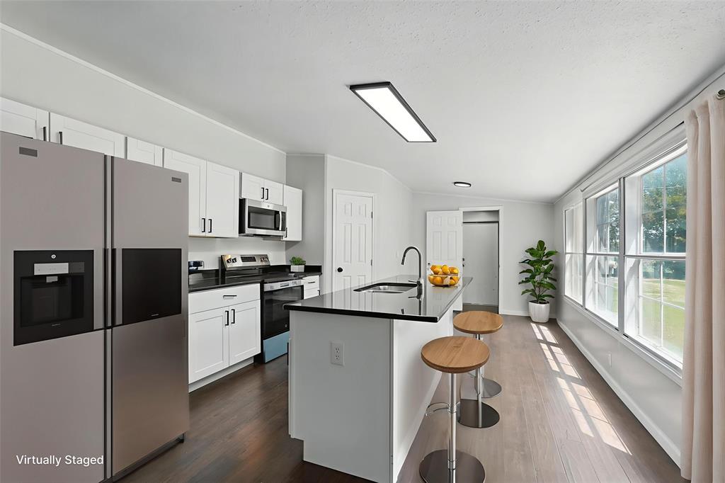 Your beautifully renovated home is move-in ready and waiting for you! Step inside to discover an open floor plan filled with natural light, creating a bright and welcoming atmosphere. The brand-new kitchen is a showstopper, featuring stainless steel appliances, gorgeous countertops, and an eat-in island that seamlessly connects to the dining and living areas—perfect for both everyday living and entertaining.