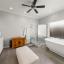 Retreat to the luxurious primary suite, generously sized and overlooking the serene backyard. The spa-inspired en-suite bathroom is designed for ultimate relaxation, featuring a large walk-in shower with marble tile, an oversized jetted soaking tub, and luxurious radiant heated flooring.