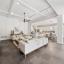 The open-concept layout connects the main living spaces seamlessly, with the grand living room showcasing exposed wood beams, two elegant fireplaces, decorative lighting, and walls of windows that bathe the home in natural light and frame stunning views of the resort-style backyard.