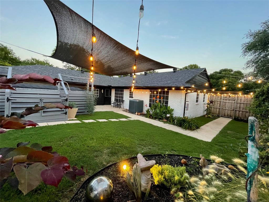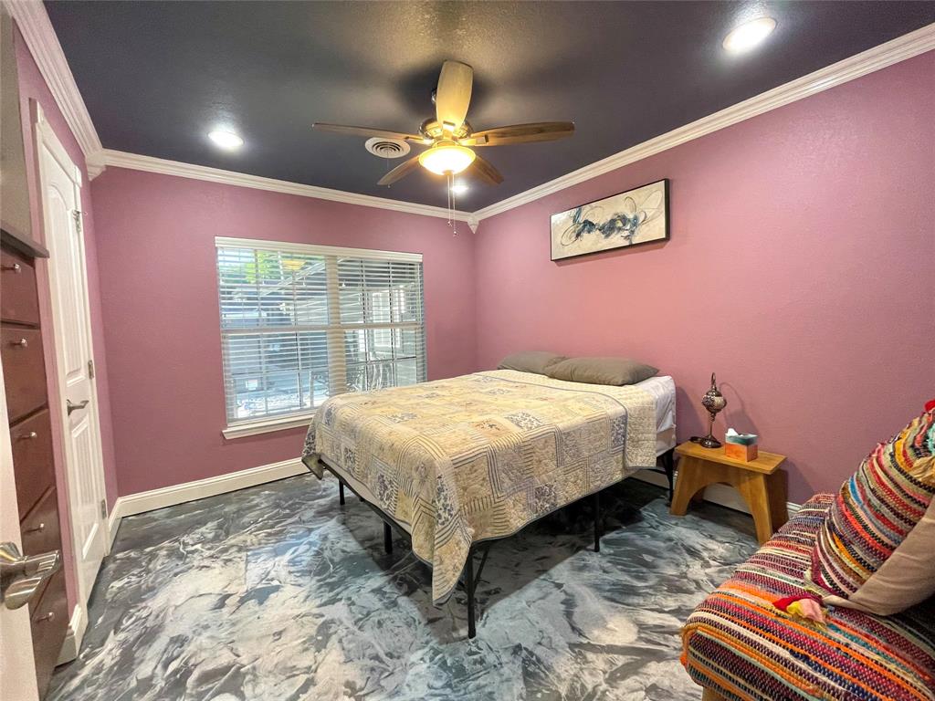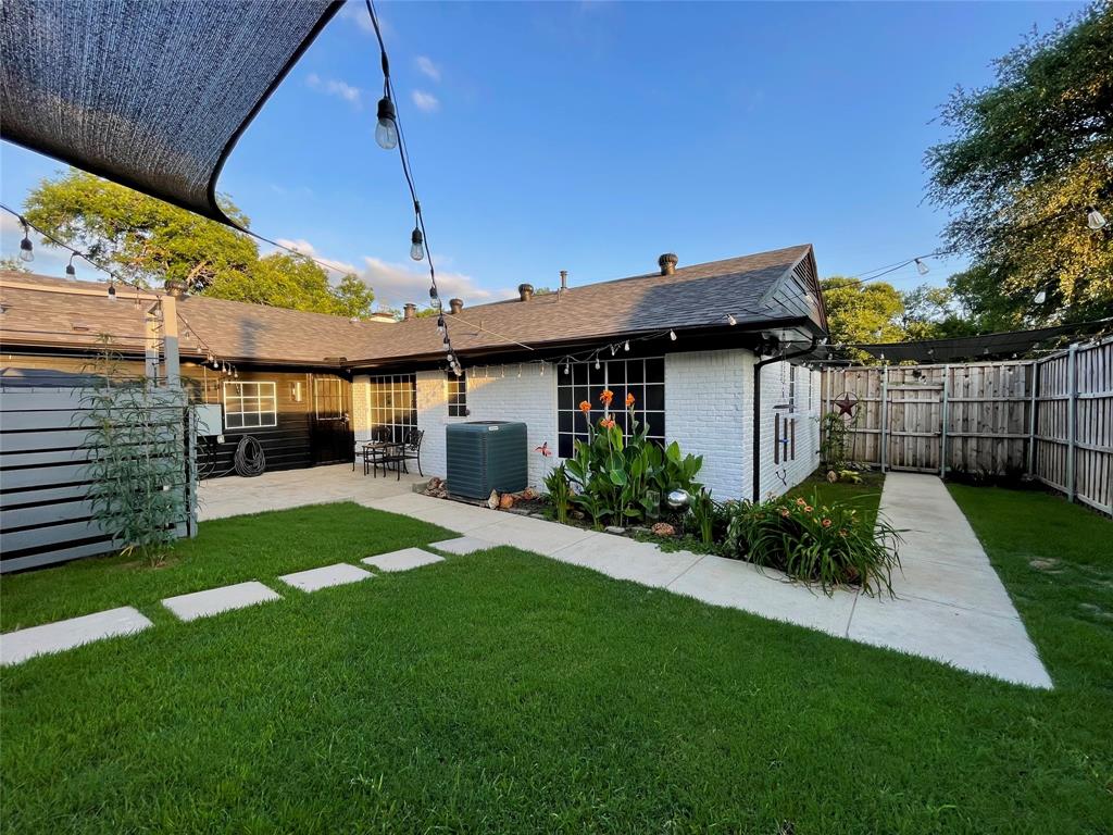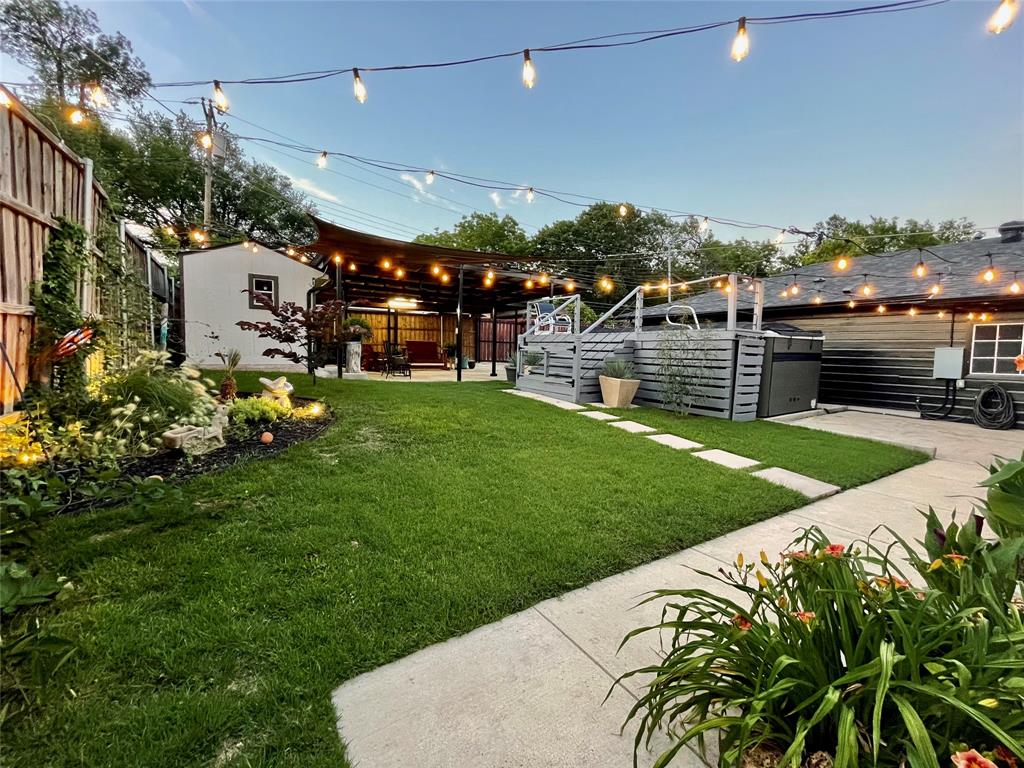 Step inside to find two spacious living areas that offer versatility and comfort. The home features a classic galley-style kitchen with an abundance of beautiful wood cabinetry and sleek granite countertops. With 4 bedrooms and 2.5 bathrooms, the layout includes an en-suite bath in one of the secondary bedrooms and a large walk-in shower in the primary bathroom. Each bedroom is finished with durable epoxy flooring, adding a modern, polished touch throughout. Step outside into a serene backyard that feels like a private oasis in the heart of the city. A clean, spacious patio sets the stage for outdoor relaxation or entertaining, while surrounding lush greenery and assorted plants offer a sense of calm and seclusion.