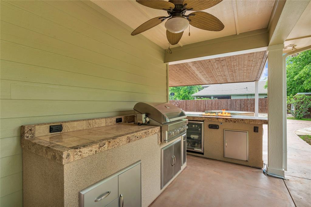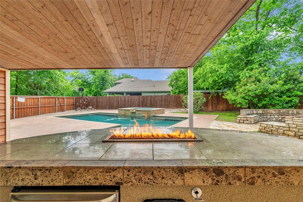 Step outside into the backyard retreat, where you’ll find a luxurious heated saltwater swimming pool with jacuzzi, a massive stone fire pit with built-in rock seating, and a gas bar fire pit — all designed to help you entertain with ease. The fully equipped outdoor kitchen is ready for unforgettable gatherings.