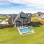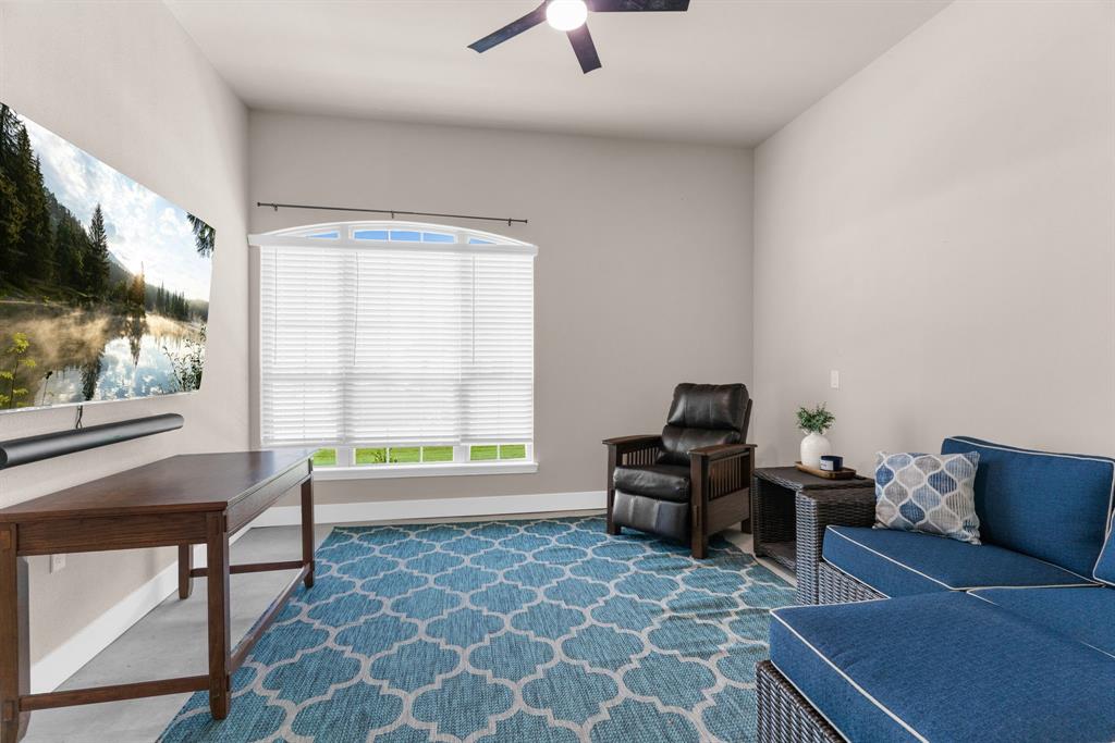 The oversized 5-car Super Stall garage includes one extra-wide, nine-foot-tall door designed for trucks that won’t fit in standard garages. Inside, there is a fully finished, air-conditioned bonus room of approximately 180 square feet — ideal for hobbies, entertaining, or a private retreat.