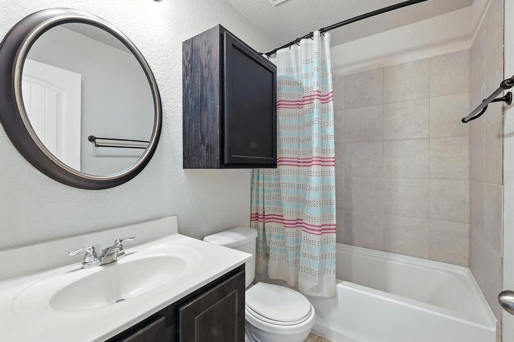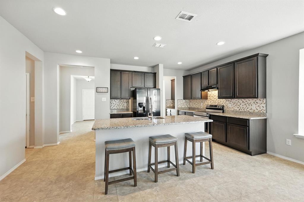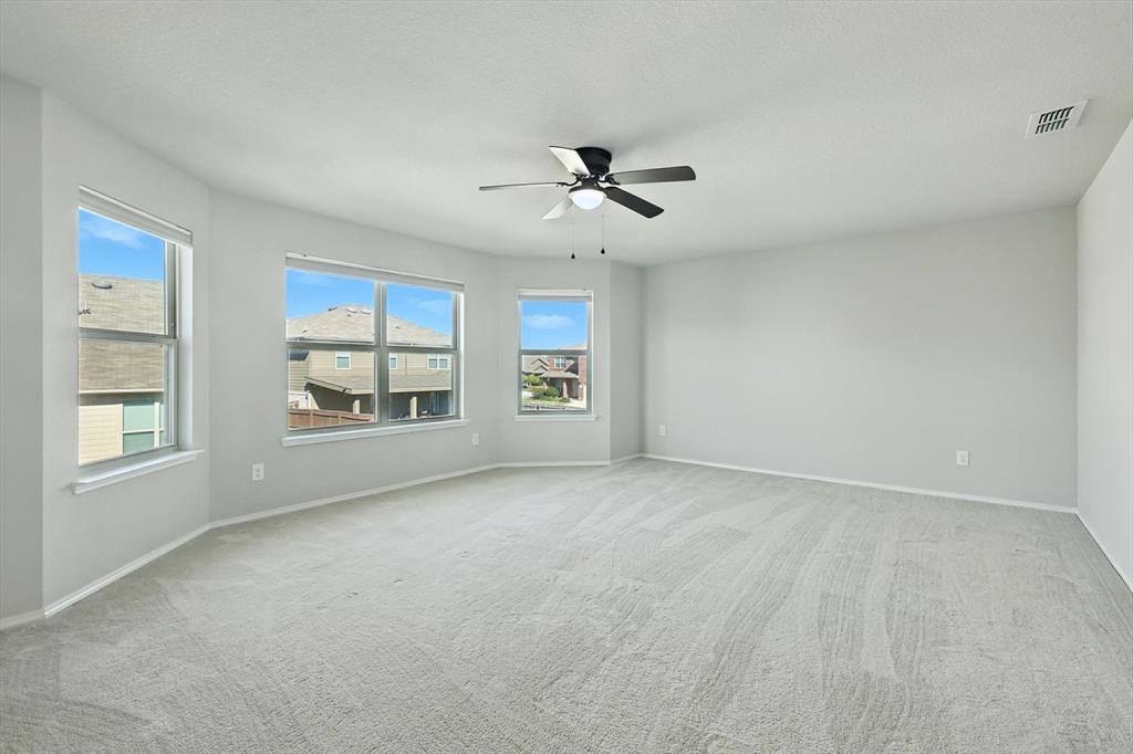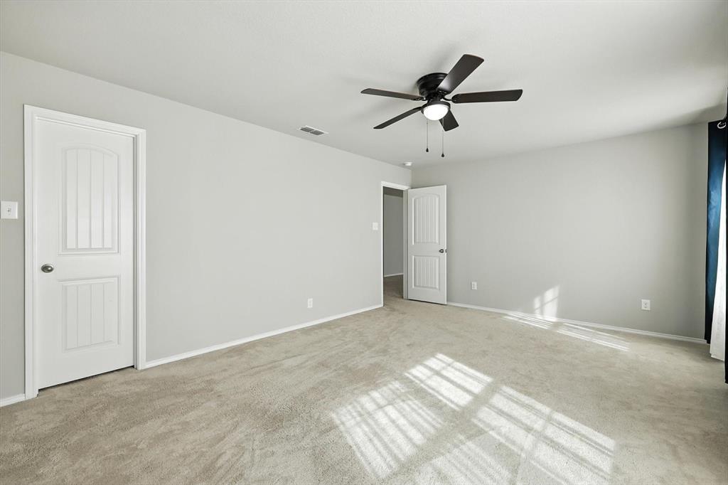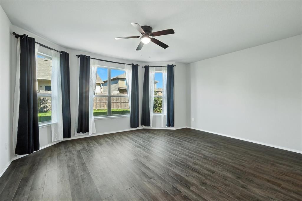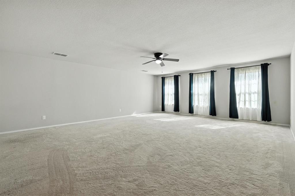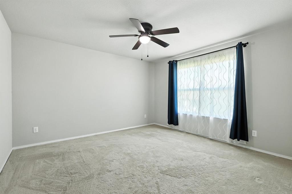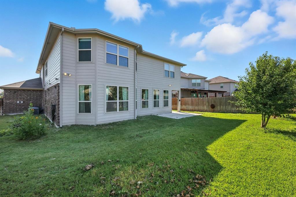Beautiful 5 bed, 3.5 bath home with bonus room, second living area and 3 car garage! This home is ideal for the large family with ample space to spread out or entertain. Located within Eagle Mountain Saginaw ISD, this 2017 build has 9 foot ceilings downstairs, as well as hard wood floors, granite countertops throughout, and ceiling fans in every room. Separate air conditioners on each level with nest thermostat to keep everyone comfortable, curtains and blinds also to stay with the home. First floor master suite with large bay windows, attached bathroom with separate shower and soaker tub, dual vanities and walk in closet. Upstairs has an oversized living room and bonus room to accommodate every needs, great for kids play room, office or theatre. Front of the home has a 3 car garage and driveway to store all the toys big and small!