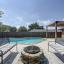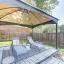 Step into your own backyard paradise complete with a sparkling pool, covered patio extended by a wooden pergola, an extra gazebo behind pool and lighting. All backyard furniture is included, making it move-in ready for outdoor entertaining. In the evenings, gather around the brick fire pit while enjoying the low-maintenance, fully turfed yard. A metal storage shed offers space for all your outdoor gear.