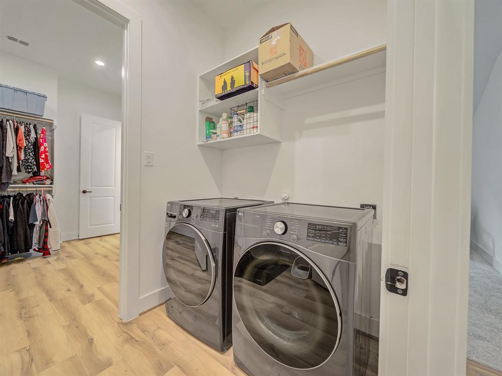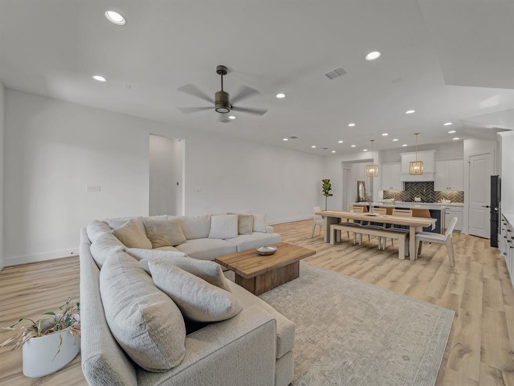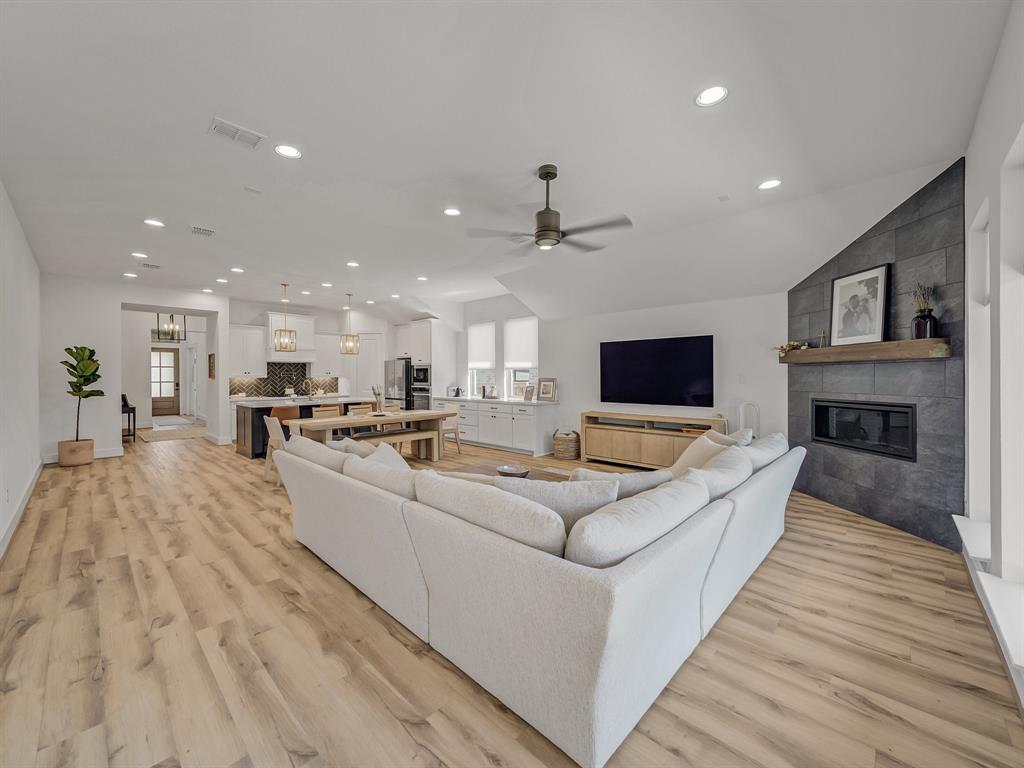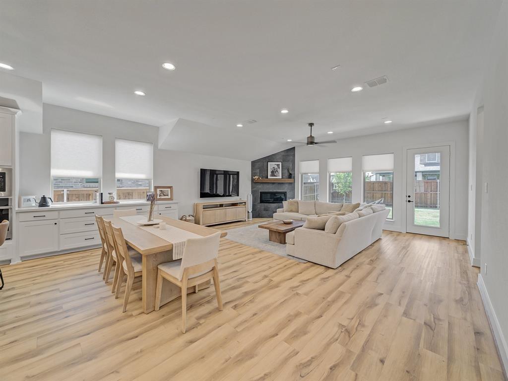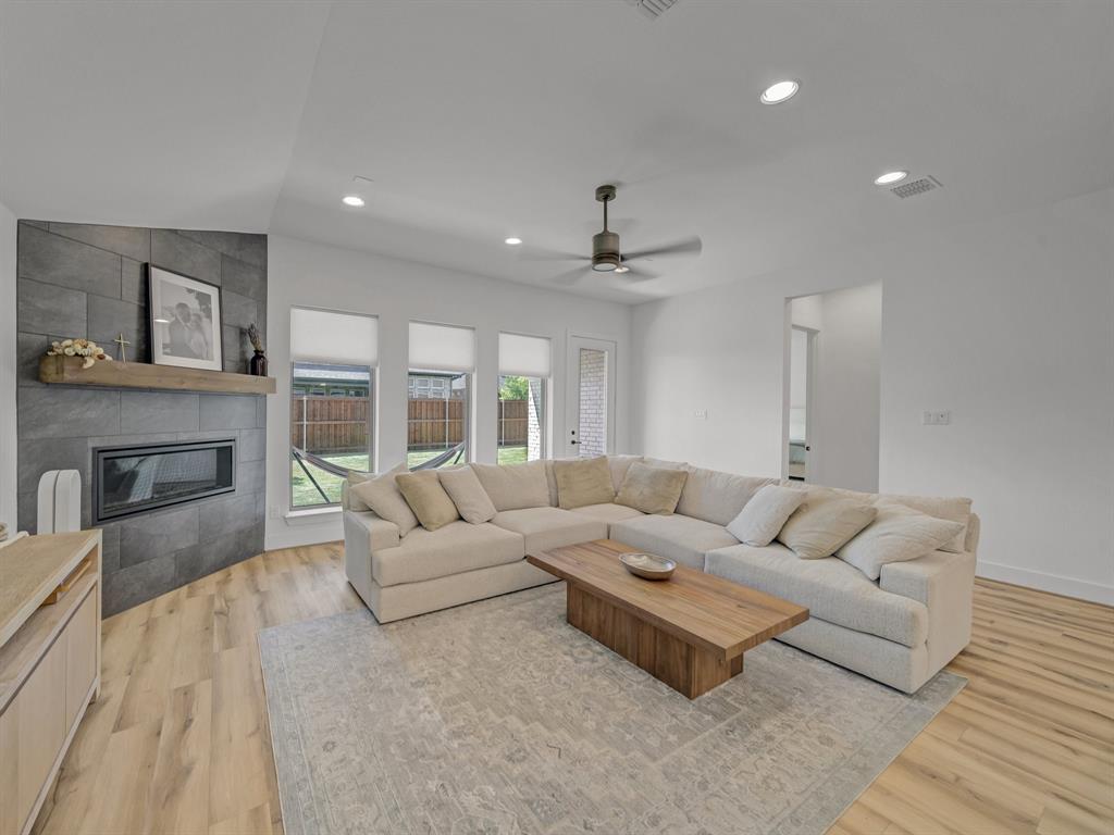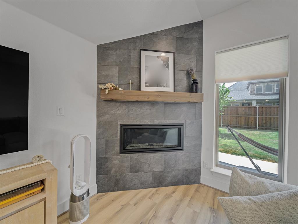 Enjoy modern living with upgraded LVP flooring, surround sound wiring in the living room with floor plug, upgraded fireplace insert and tile, plus back patio pre-wired for TV, speakers, and a fan. Additional upgrades include two HomePro security panels, a biometric-secured gun room with built-in storage, lighting package upgrades, and five CAT6 locations for a high-tech home setup.