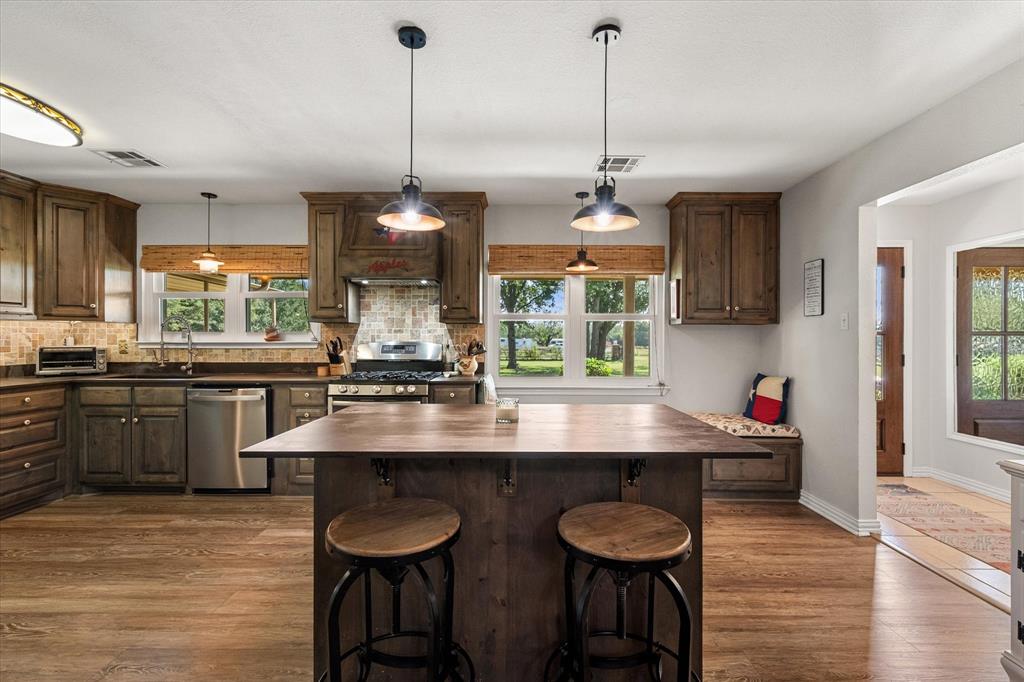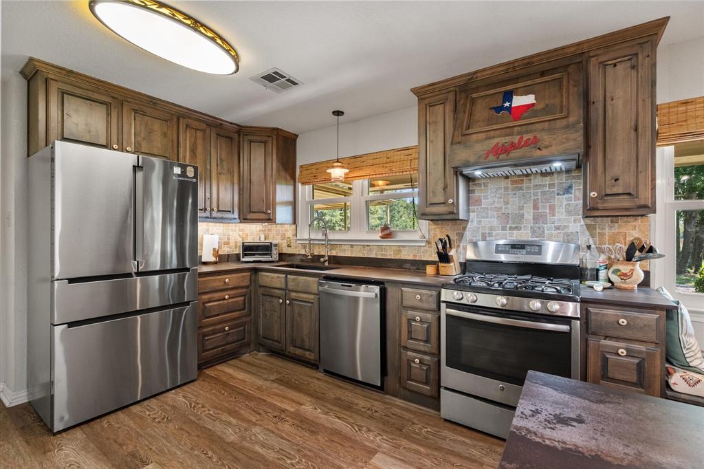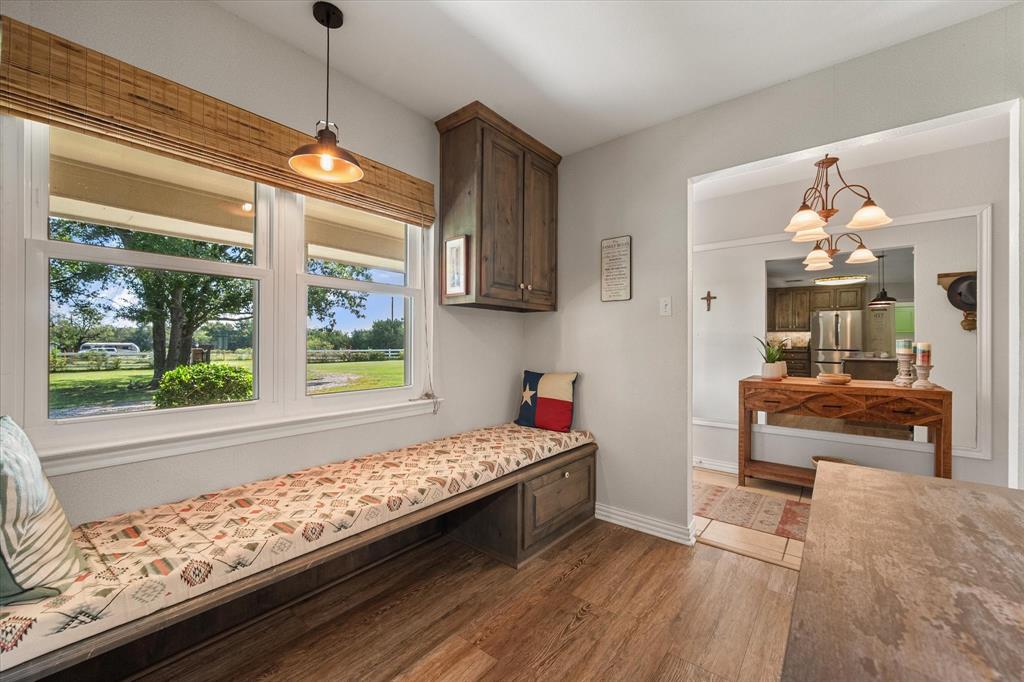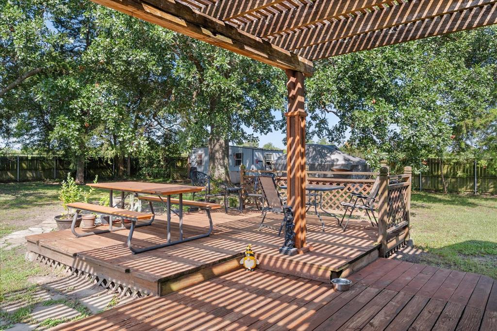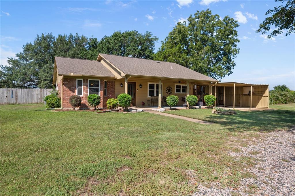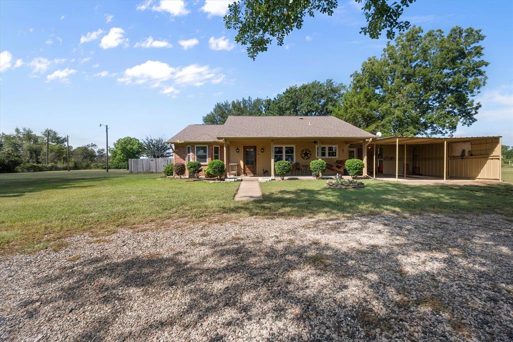 This is the perfect country home on a beautiful 5.87-acre corner lot in the sought-after Mildred ISD, just minutes from Richland Chambers Lake. The property is fully fenced with two front entrances, giving it both convenience and privacy. The cozy front porch sets the tone with its inviting swing. Inside, the kitchen has been tastefully redone with custom cabinets, a large island, decorative backsplash, and a charming window bench. The dining room, with its vaulted ceilings and wood-burning fireplace, could also serve as a formal living space. Beyond the dining area, you’ll find an oversized living room complete with a wood-burning stove. The split floor plan is ideal. The primary bedroom features sliding barn doors and a walk-in closet. The second bedroom features a charming bay window with storage seat. Throughout the home, newer double-pane vinyl windows bring in natural light and are finished with roman shades in most rooms. Step outside and you’ll find a backyard built for entertaining. A 16x32 above-ground pool with a newer vinyl liner is surrounded by a gorgeous deck. A pergola shades the back patio, creating the perfect spot to relax or host friends. For your hobbies or animals, the property is cross-fenced and includes a two-stall barn with electricity, a greenhouse, multiple storage buildings, and a chicken coop that’s fully equipped with water, electric, and an automatic gate. Pear and peach trees add to the charm, making this home truly one of a kind. As an added bonus, the home has been wired for a whole home generator. There’s so much here to enjoy—you’ll want to see it in person. Schedule your appointment today!
