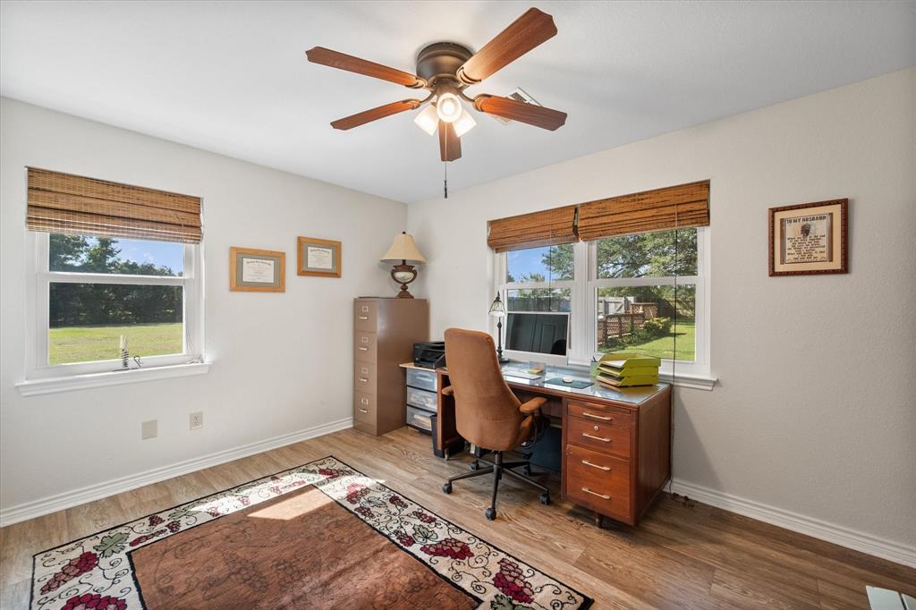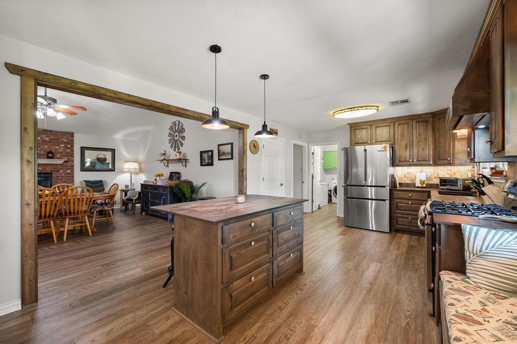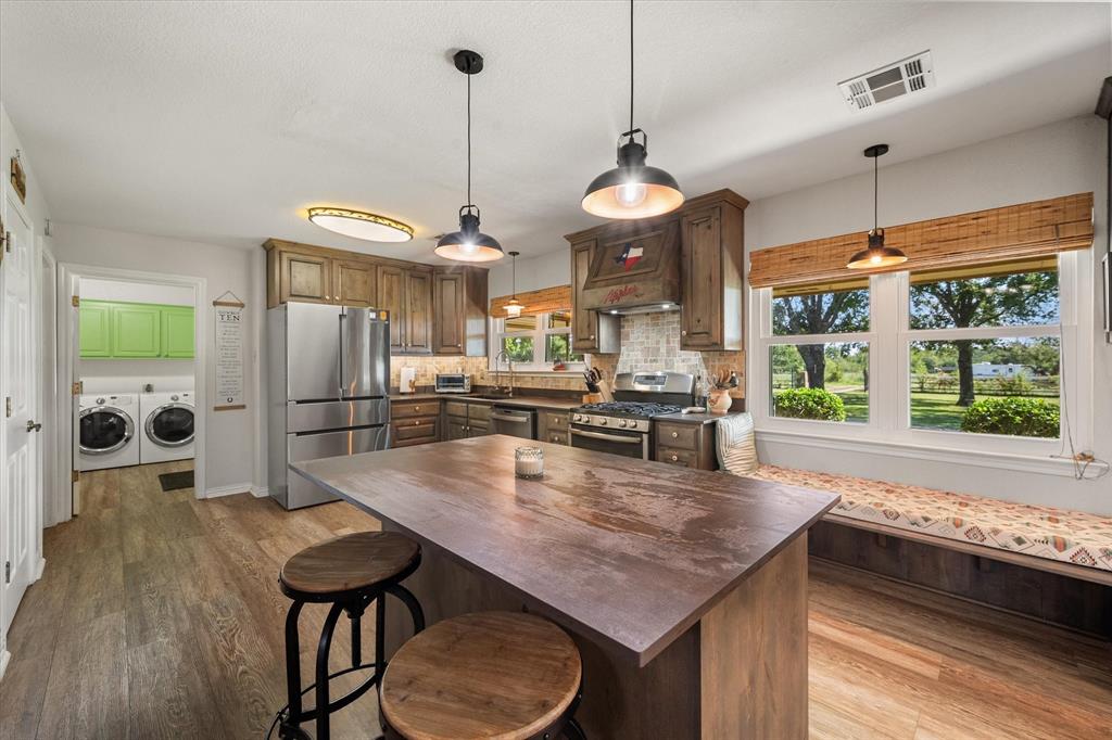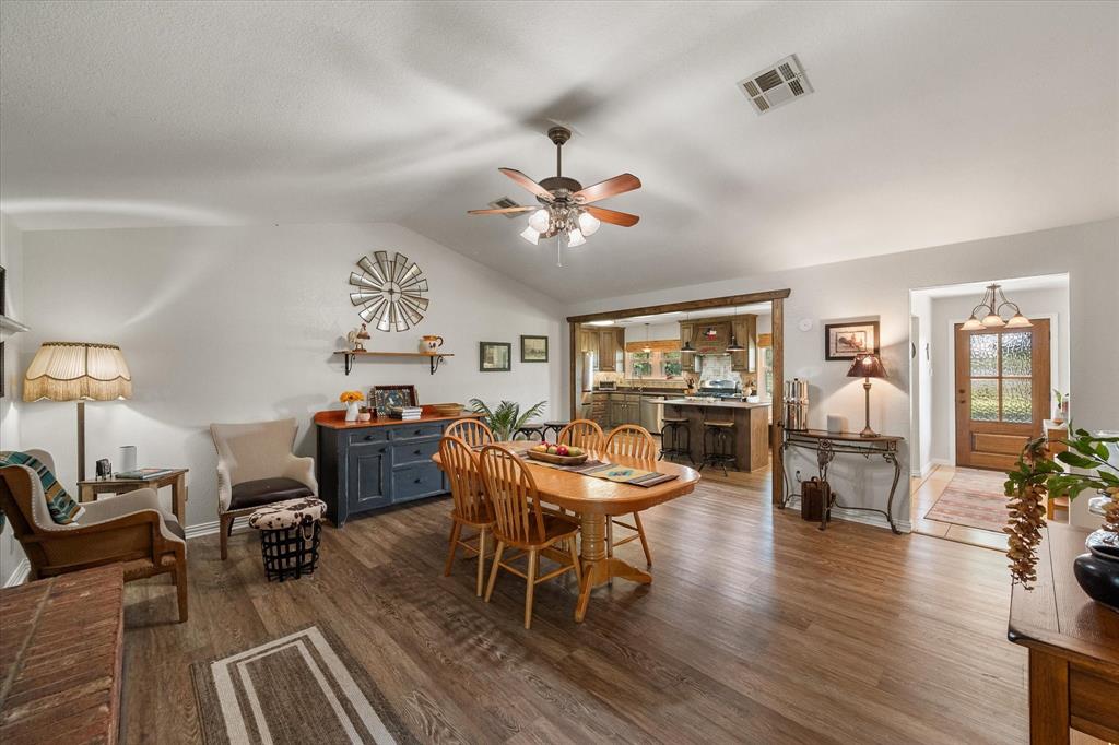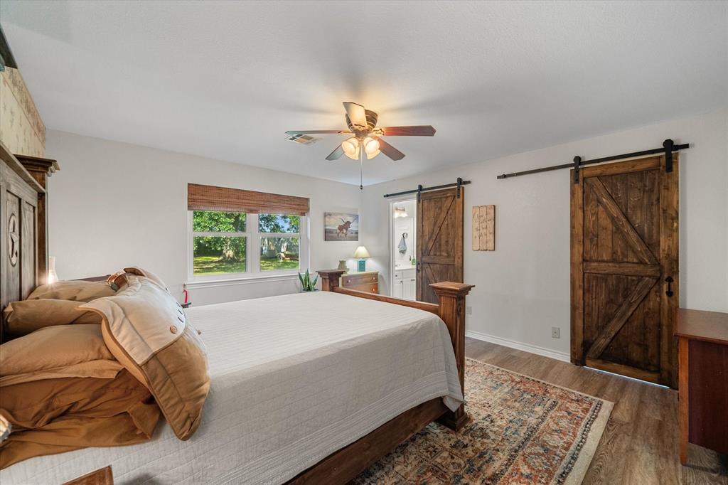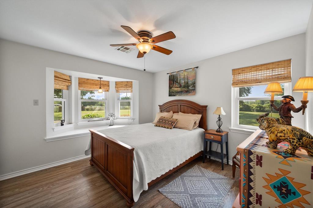 This is the perfect country home on a beautiful 5.87-acre corner lot in the sought-after Mildred ISD, just minutes from Richland Chambers Lake. The property is fully fenced with two front entrances, giving it both convenience and privacy. The cozy front porch sets the tone with its inviting swing. Inside, the kitchen has been tastefully redone with custom cabinets, a large island, decorative backsplash, and a charming window bench. The dining room, with its vaulted ceilings and wood-burning fireplace, could also serve as a formal living space. Beyond the dining area, you’ll find an oversized living room complete with a wood-burning stove. The split floor plan is ideal. The primary bedroom features sliding barn doors and a walk-in closet. The second bedroom features a charming bay window with storage seat. Throughout the home, newer double-pane vinyl windows bring in natural light and are finished with roman shades in most rooms. Step outside and you’ll find a backyard built for entertaining. A 16x32 above-ground pool with a newer vinyl liner is surrounded by a gorgeous deck. A pergola shades the back patio, creating the perfect spot to relax or host friends. For your hobbies or animals, the property is cross-fenced and includes a two-stall barn with electricity, a greenhouse, multiple storage buildings, and a chicken coop that’s fully equipped with water, electric, and an automatic gate. Pear and peach trees add to the charm, making this home truly one of a kind. As an added bonus, the home has been wired for a whole home generator. There’s so much here to enjoy—you’ll want to see it in person. Schedule your appointment today!