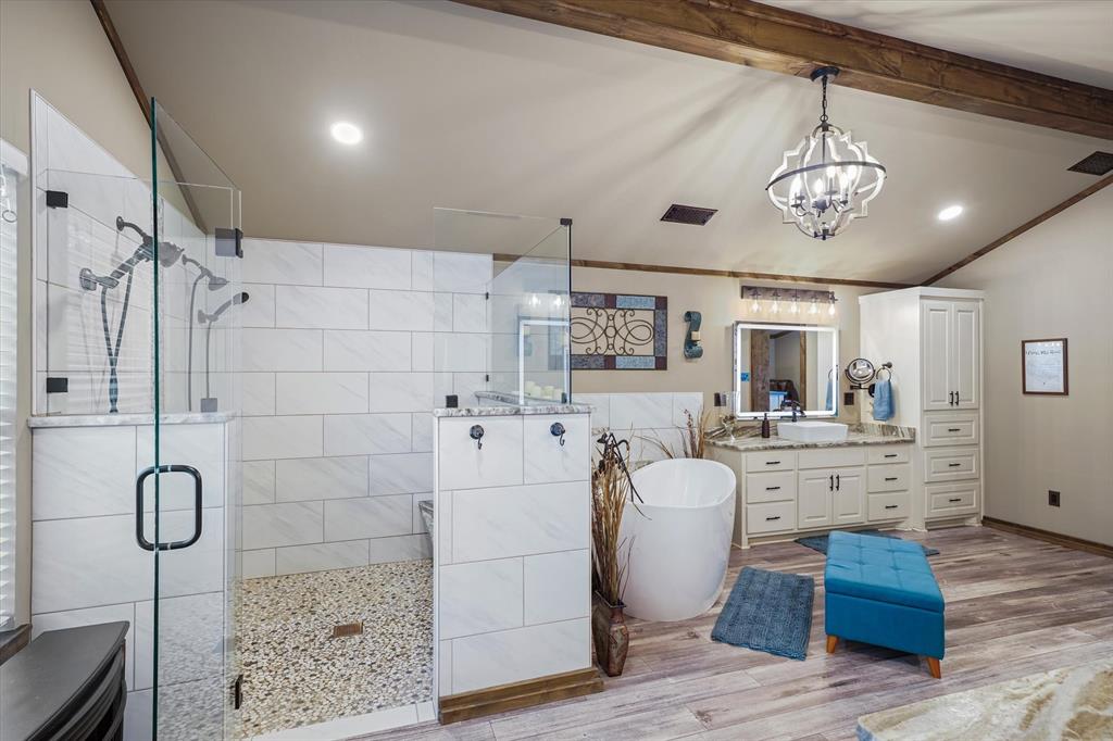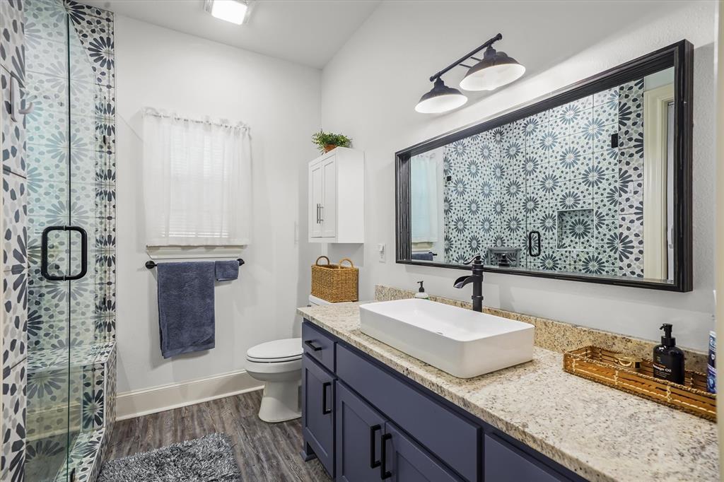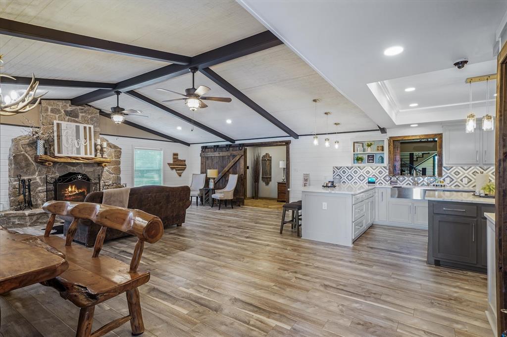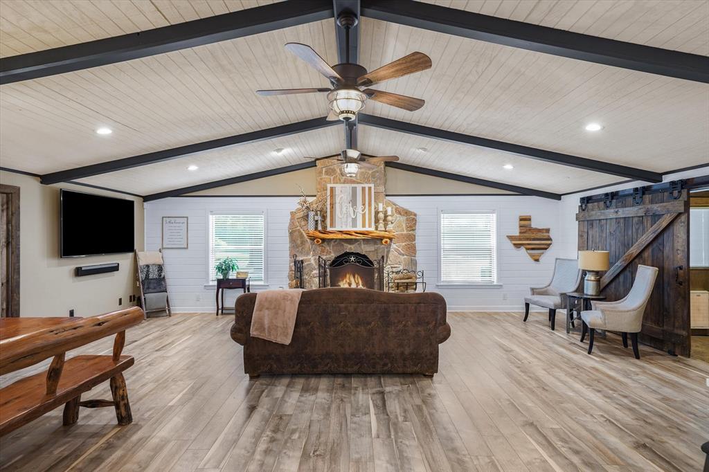 The modern ranch-style main home offers 4 BR, 3.5 BA, plus a large bonus room that can serve as a 5th BR. With two spacious living areas, open-concept layout, fresh paint, abundant natural light, and recently installed wood laminate flooring, the home feels like a retreat. The renovated kitchen features custom cabinetry, quartz countertops, and a large walk-in pantry. The primary suite has been completely remodeled with a walk-in shower and custom walk-in closet. Additional updates include patio lighting, trimmed porches with added lights, and a mudroom with custom storage. The main house also includes a 60’ Wi-Fi tower providing internet and TV service.