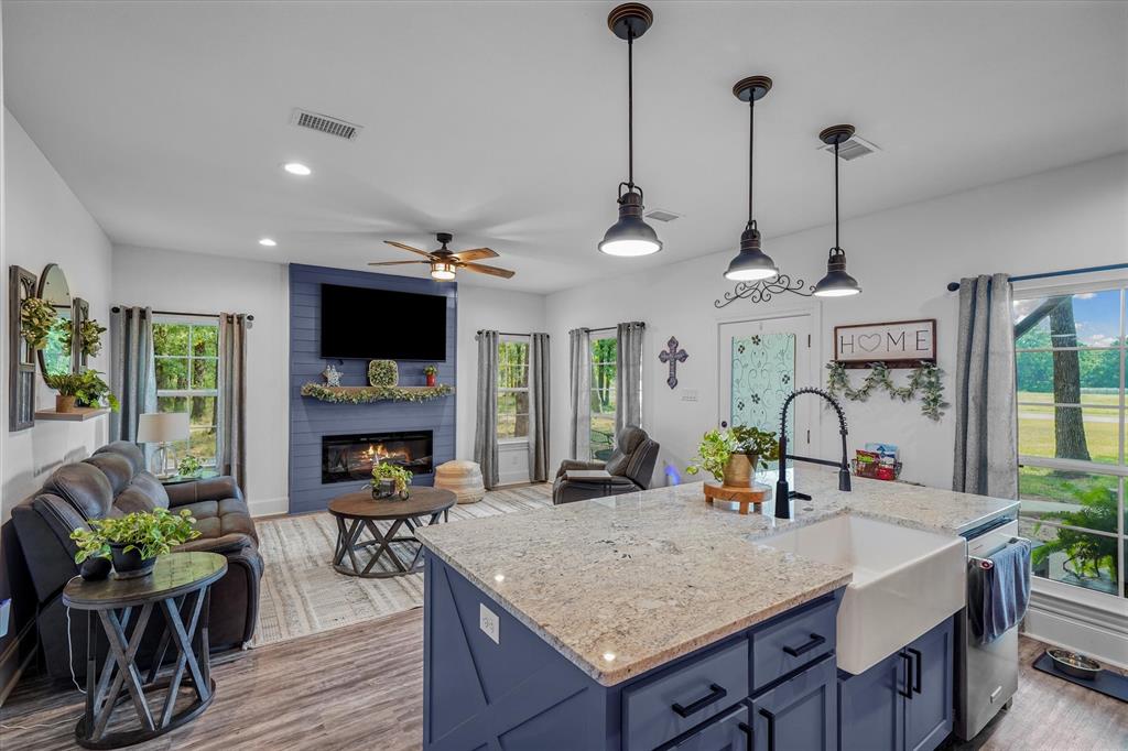 Welcome to this rare ranch estate offering modern living, income potential, and resort-style amenities. Enter through a commercial-grade gated entrance with pipe fencing and a tree-lined drive that sets the tone for this one-of-a-kind property. The land is mostly cleared, cross-fenced for cattle, and in hay production with Tifton 85 in back meadows and coastal Bermuda up front. At the heart of the property is a stunning 5 ±ac stocked lake with fishing pier and pavilion, creating the perfect setting for relaxation and recreation.