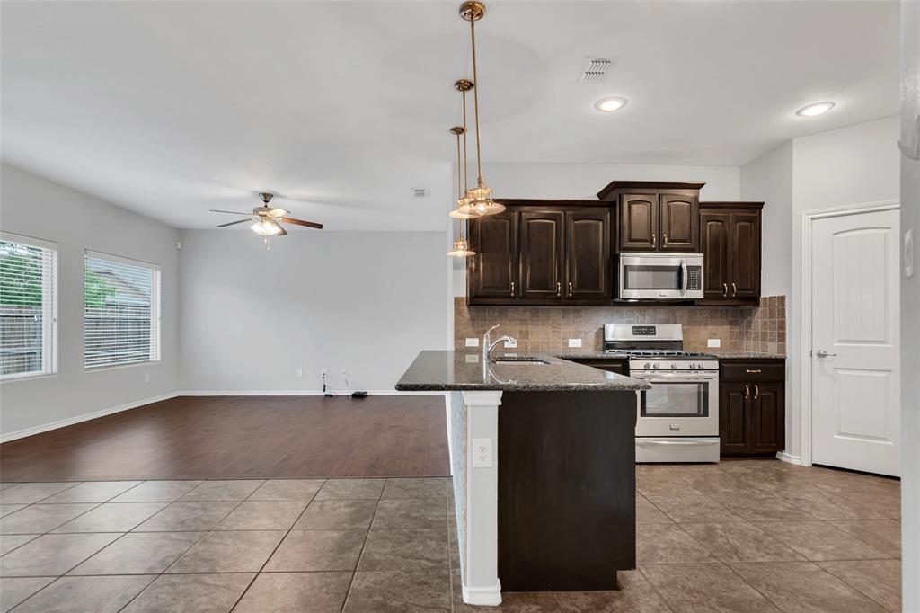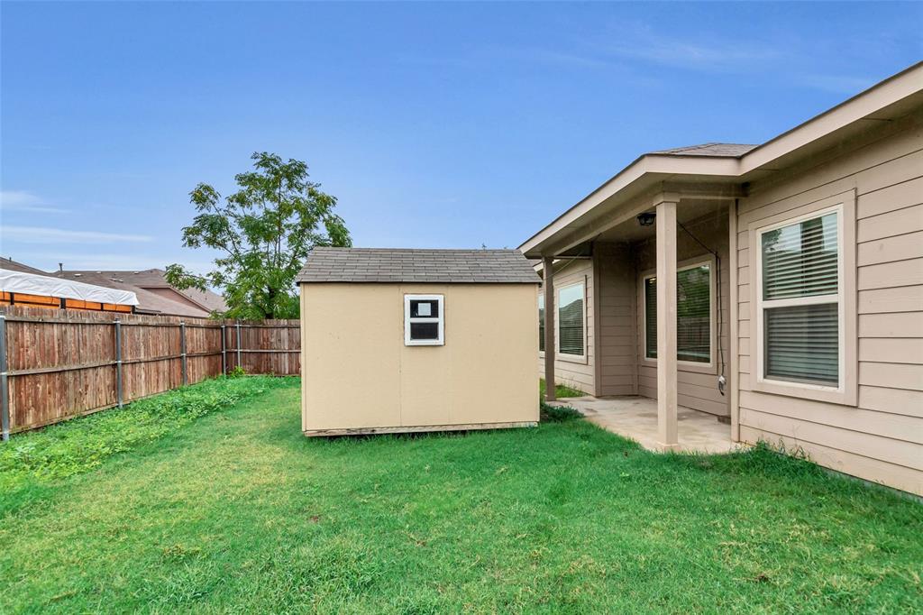 This charming single-story home offers 4 bedrooms and 2 baths with a thoughtful layout featuring two spacious living areas. Recent updates include neutral-toned interior paint and new carpet in the family room and bedrooms. The kitchen shines with granite countertops, a breakfast bar, tile backsplash, and gas stainless steel appliances. The master suite includes a walk-in closet and a full bath with a garden tub, dual sinks, and a walk-in shower. Enjoy outdoor living on the covered patio overlooking the private backyard, complete with a handy storage unit for extra convenience. Additional perks include a 2-car garage, move-in ready condition, and a prime location with easy access to I-35, shopping, and dining.