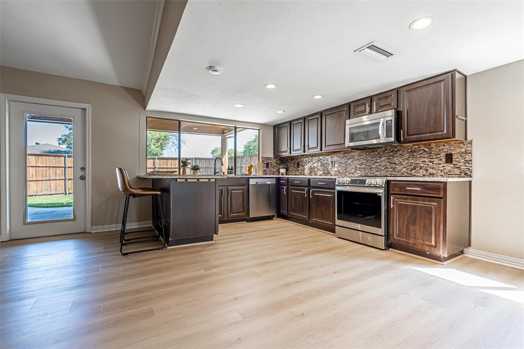Beautifully updated 3-bedroom, 2-bath home on a spacious corner lot in The Colony! This home features new luxury vinyl flooring, plush new carpet, fresh paint throughout, and updated fans and doors for a modern touch. The kitchen comes with granite countertops, perfect for cooking and entertaining. Enjoy a large game room with a stylish barn door, ideal for extra living space or a home office. The 8-foot privacy fence, covered patio with large ceiling fan and extended patio create the perfect outdoor retreat. Conveniently located near top-rated schools, shopping, and dining. Move-in ready and full of upgrades!