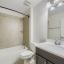 The primary suite is conveniently located on the main level and includes dual separate vanities, a walk-in closet, and a frameless glass walk-in shower.