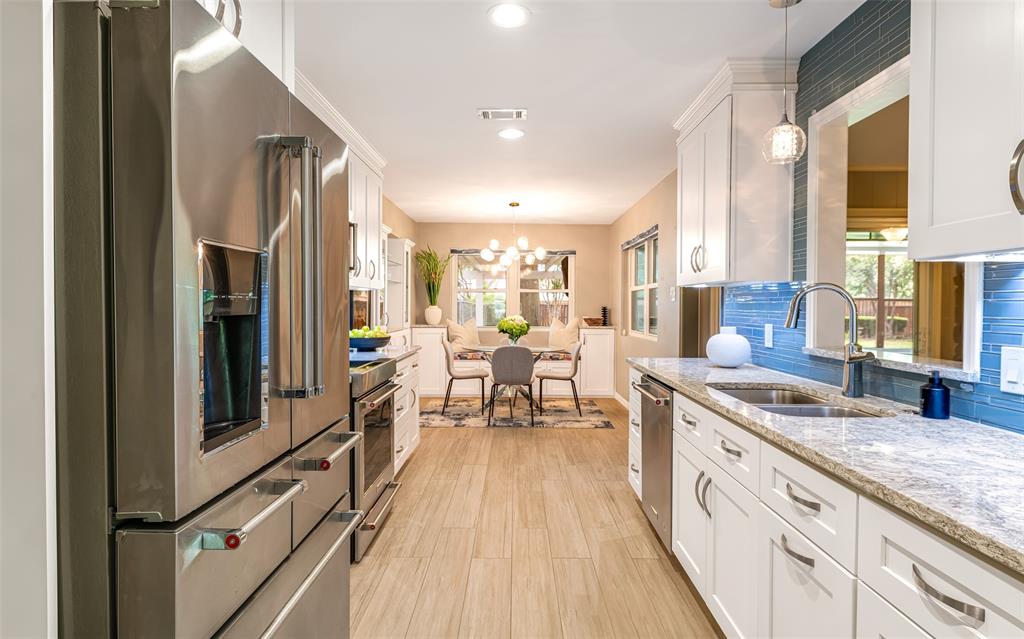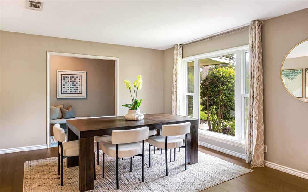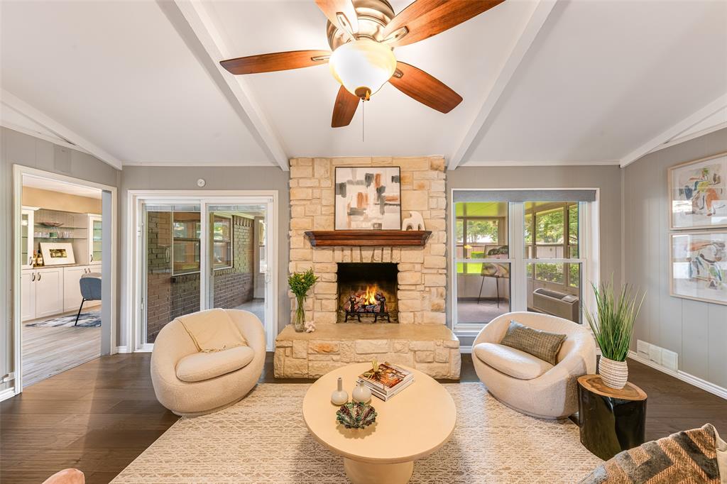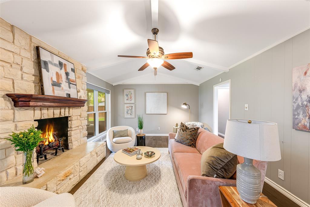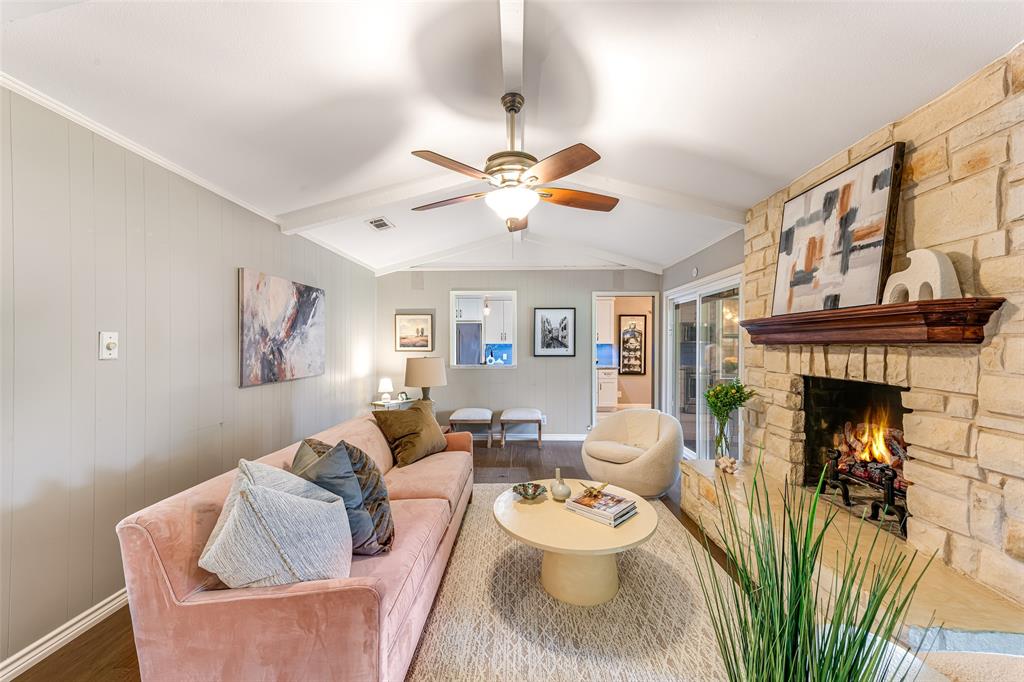 TMULTIPLE OFFERS RECEIVED. Highest and best due by NOON on Monday, September 8, 2025. This beautifully updated 4-bedroom, 3.5-bath ranch home is a rare opportunity near the shores of Grapevine Lake. Upon entry, the formal living and dining rooms overlook the landscaped front yard and have direct access to the kitchen. Designed for both entertaining and everyday living, the kitchen has quartz countertops, KitchenAid stainless steel appliances and an induction range, The breakfast room overlooks the backyard with a charming window seat and custom millwork including a built-in dry bar and pantry for extra storage. The open-concept design flows seamlessly into the family room with a vaulted ceiling and fireplace with stone surround. The sunroom, equipped with a recently installed heating and cooling system, serves as a seamless extension of the living space—perfect for year-round enjoyment with views of the sprawling backyard and many mature trees. The primary suite offers dual walk-in closets and an updated en-suite bath with quartz countertops, dual sinks, and decorative shower tile. Two secondary bedrooms share a Jack-and-Jill bath, while the fourth bedroom with a private en-suite bath, located on the opposite side of the home, makes an ideal guest suite or office. Additional highlights include engineered hardwood floors in the living areas, utility room with storage, two-car garage, two-car carport, and a shaded backyard designed for outdoor living and entertaining. This lakeside lifestyle includes easy access to lakefront Meadowmere park and the C Shane Wilbanks Trail.