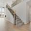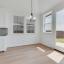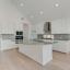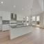 Custom design touches include a sleek staircase with wrought iron spindles, 8-foot interior doors, and Rev Wood flooring. The open concept kitchen is a chef’s dream, with granite slab countertops, Shaker-style cabinetry, a gas cooktop with a sleek stainless and glass vent hood, full bowl sink, trash can drawer, spice cabinet, and an oversized island at the center of it all.