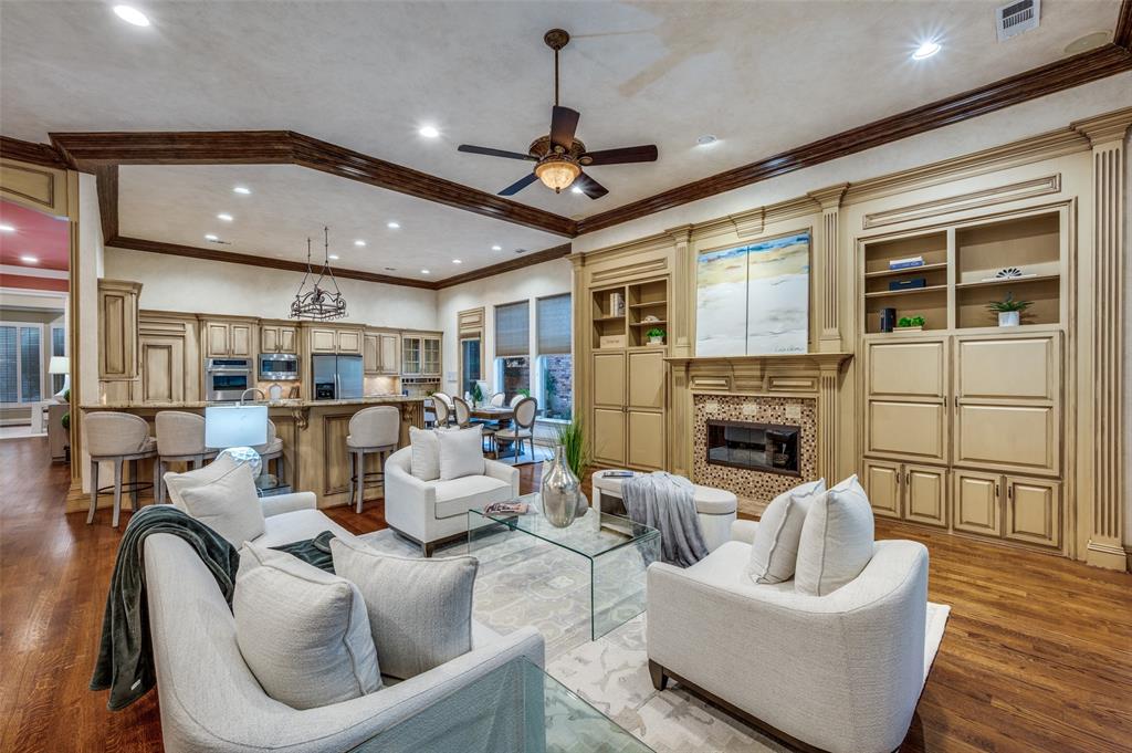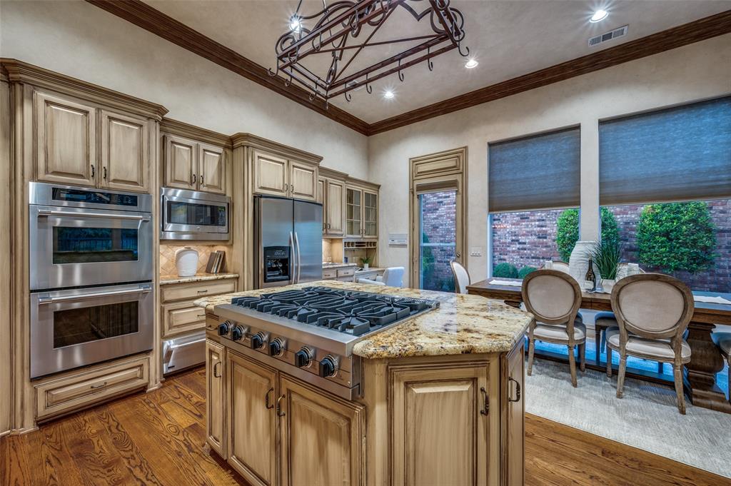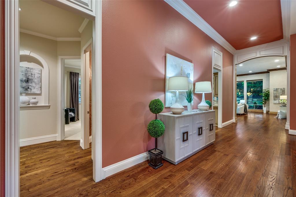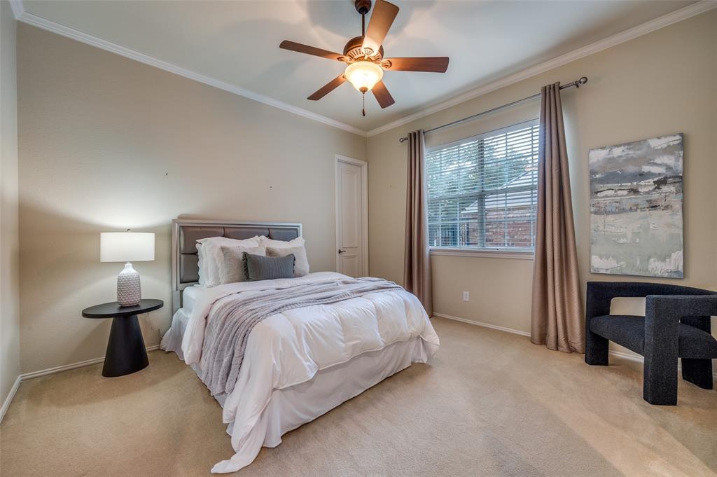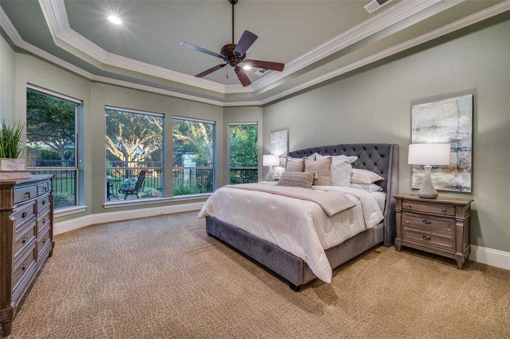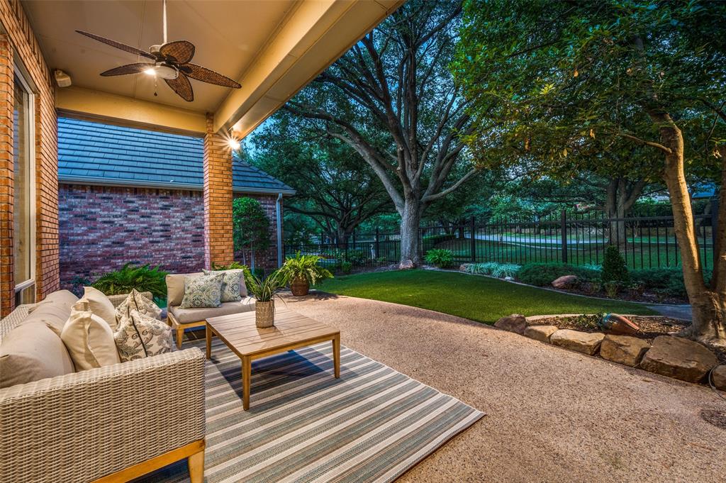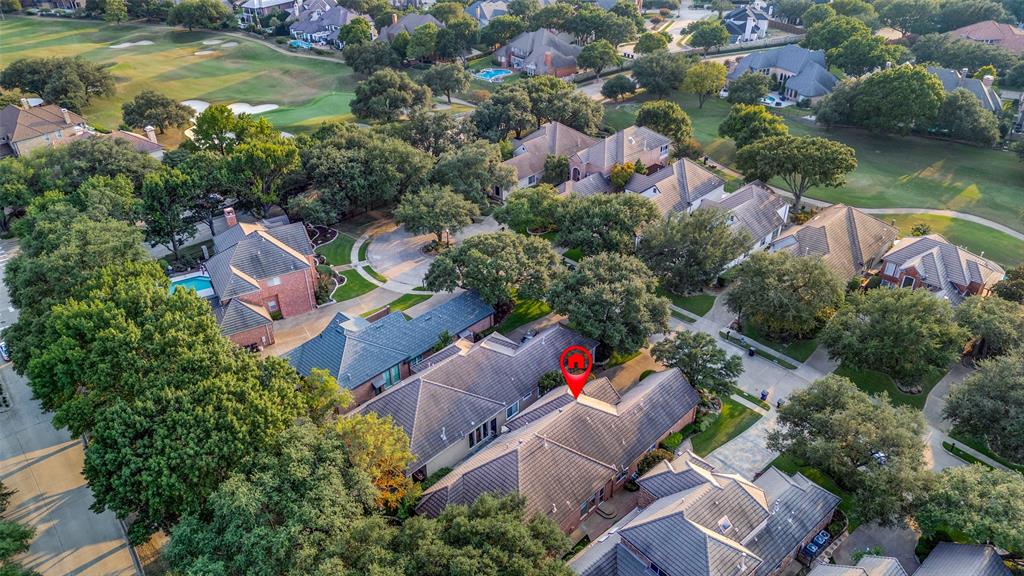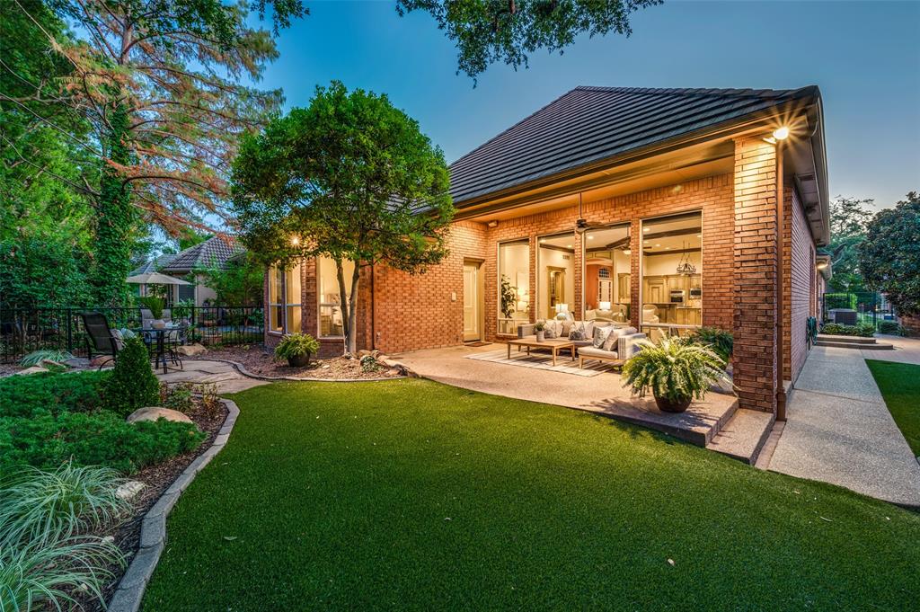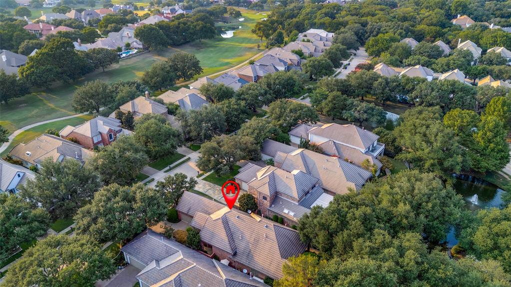 OPEN HOUSE SUN (9-14) 2-4PM. This exquisite, updated, single-story Steve Roberts custom home is nestled in the prestigious Fairways section of Stonebriar Village, a guard-gated, resort-style golf course community. Backing to a peaceful greenbelt and neighborhood pond, the home boasts outstanding curb appeal and an east-facing backyard. Meticulously maintained, the residence showcases a versatile open-concept design with soaring ceilings, rich hardwood floors, elegant crown molding, and walls of windows that fill the interiors with natural light. A gracious entryway opens to a sophisticated dining room and a formal living area that can also serve as a private study. The heart of the home centers around a spacious, well-appointed kitchen with a sunlit breakfast nook, flowing seamlessly into an inviting family room with a cozy fireplace, custom built-ins, and expansive views of the serene greenbelt. The private primary suite is a true retreat, featuring a sitting area wrapped in windows, dual vanities, a soaking tub, an oversized separate shower, and a custom-designed closet. Two additional generously sized bedrooms are located at the front of the home and share a Jack-and-Jill bath. Outdoors, mature trees and impeccable landscaping create a picturesque setting. The low-maintenance backyard is enhanced with premium artificial turf, offering year-round beauty and functionality. With exceptional craftsmanship throughout and a coveted location just minutes from The Star, Legacy West, the new PGA Headquarters, Toyota, world-class dining, shopping, entertainment, sporting events, and major tollways, this home perfectly blends timeless elegance with unmatched convenience.