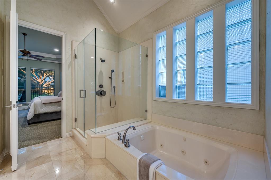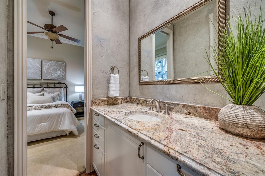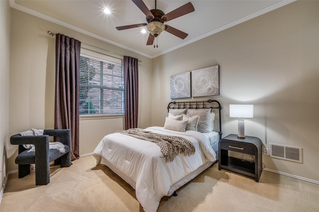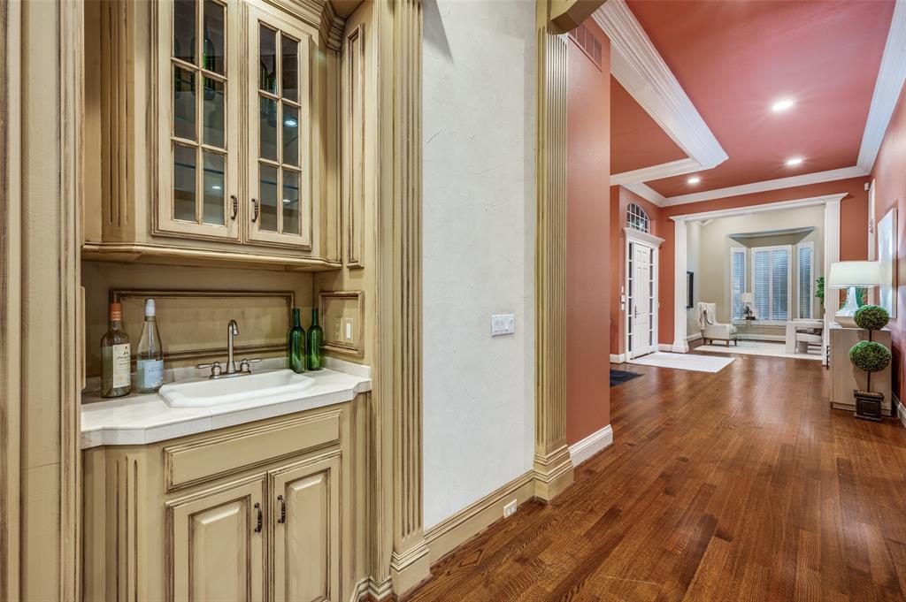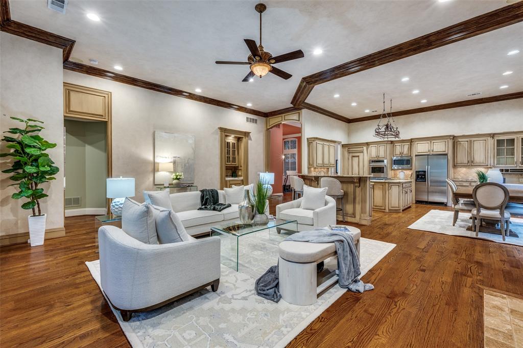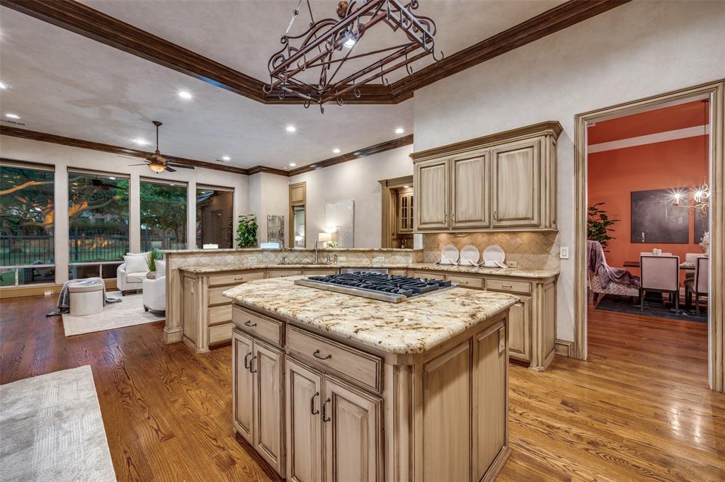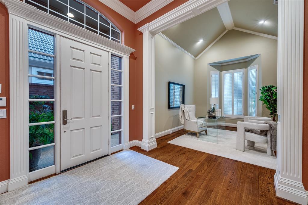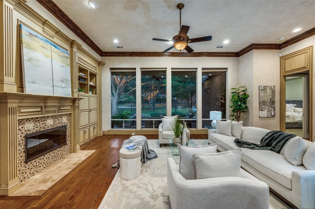 OPEN HOUSE SUN (9-14) 2-4PM. This exquisite, updated, single-story Steve Roberts custom home is nestled in the prestigious Fairways section of Stonebriar Village, a guard-gated, resort-style golf course community. Backing to a peaceful greenbelt and neighborhood pond, the home boasts outstanding curb appeal and an east-facing backyard. Meticulously maintained, the residence showcases a versatile open-concept design with soaring ceilings, rich hardwood floors, elegant crown molding, and walls of windows that fill the interiors with natural light. A gracious entryway opens to a sophisticated dining room and a formal living area that can also serve as a private study. The heart of the home centers around a spacious, well-appointed kitchen with a sunlit breakfast nook, flowing seamlessly into an inviting family room with a cozy fireplace, custom built-ins, and expansive views of the serene greenbelt. The private primary suite is a true retreat, featuring a sitting area wrapped in windows, dual vanities, a soaking tub, an oversized separate shower, and a custom-designed closet. Two additional generously sized bedrooms are located at the front of the home and share a Jack-and-Jill bath. Outdoors, mature trees and impeccable landscaping create a picturesque setting. The low-maintenance backyard is enhanced with premium artificial turf, offering year-round beauty and functionality. With exceptional craftsmanship throughout and a coveted location just minutes from The Star, Legacy West, the new PGA Headquarters, Toyota, world-class dining, shopping, entertainment, sporting events, and major tollways, this home perfectly blends timeless elegance with unmatched convenience.