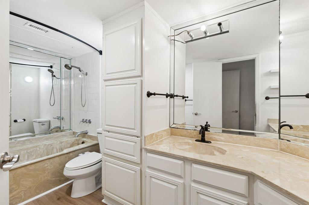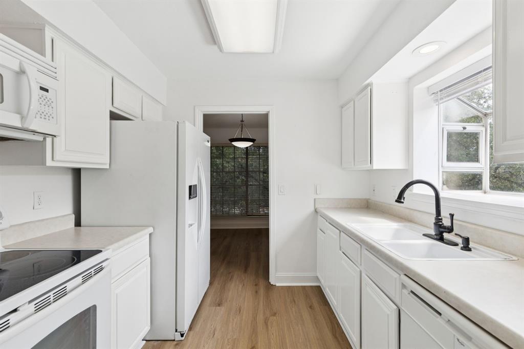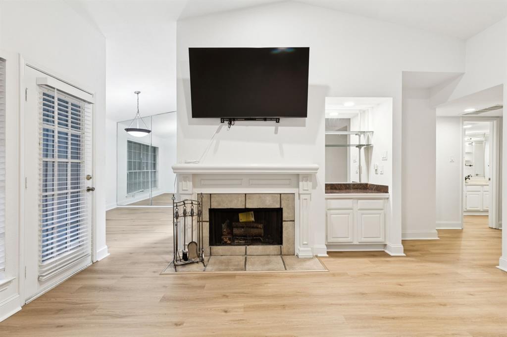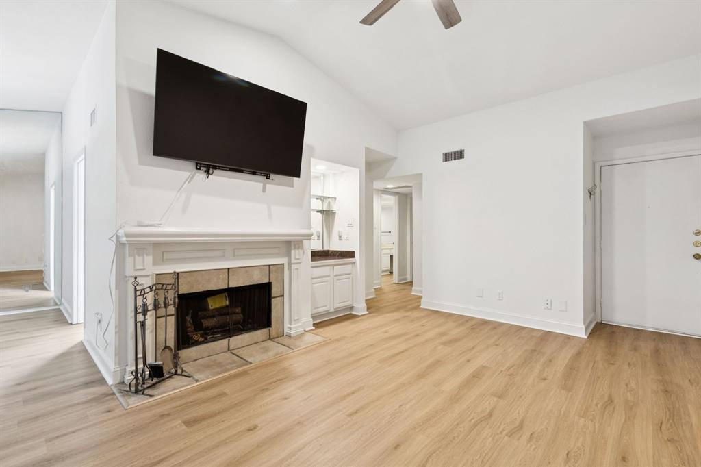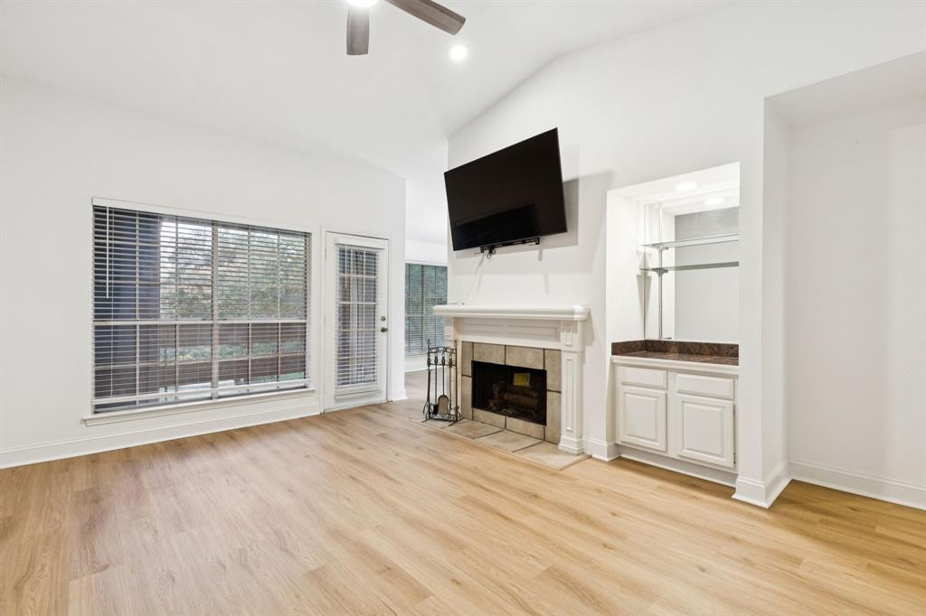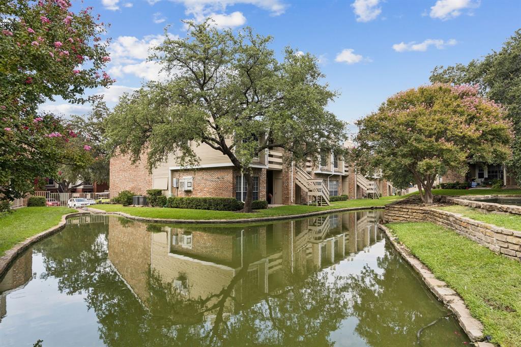 Are you looking for peace and quiet in the middle of town? You'll find it on the private back patio and balcony of this condo in Carrollton. You couldn't ask for a better location--restaurants and shopping close by--and the location within this complex is ideal with the ponds right in view. And as a corner unit within the complex, you'll have extra light and windows. Thanks to the seller who had a vision for what this unit could be, the popcorn ceilings are gone and the entire unit has fresh paint and new baseboards and trim. Best of all...no carpet! There is now beautiful LVP throughout the entire condo. Are you admiring that huge flat-screen TV above the wood-burning fireplace yet? It could stay right where it is with an acceptable offer. As a corner unit, the extra light is coming into the kitchen from the bay window above the sink. What a perfect place to grow culinary herbs for your cooking! The refrigerator, washer and dryer are staying right where they are, to simplify your life. Last, to keep your life as simple as possible, in addition to all the amenities this HOA provides, it also covers your water (hot water as well), trash, sewer and cable. Say yes to this address by coming by today to see it in person.