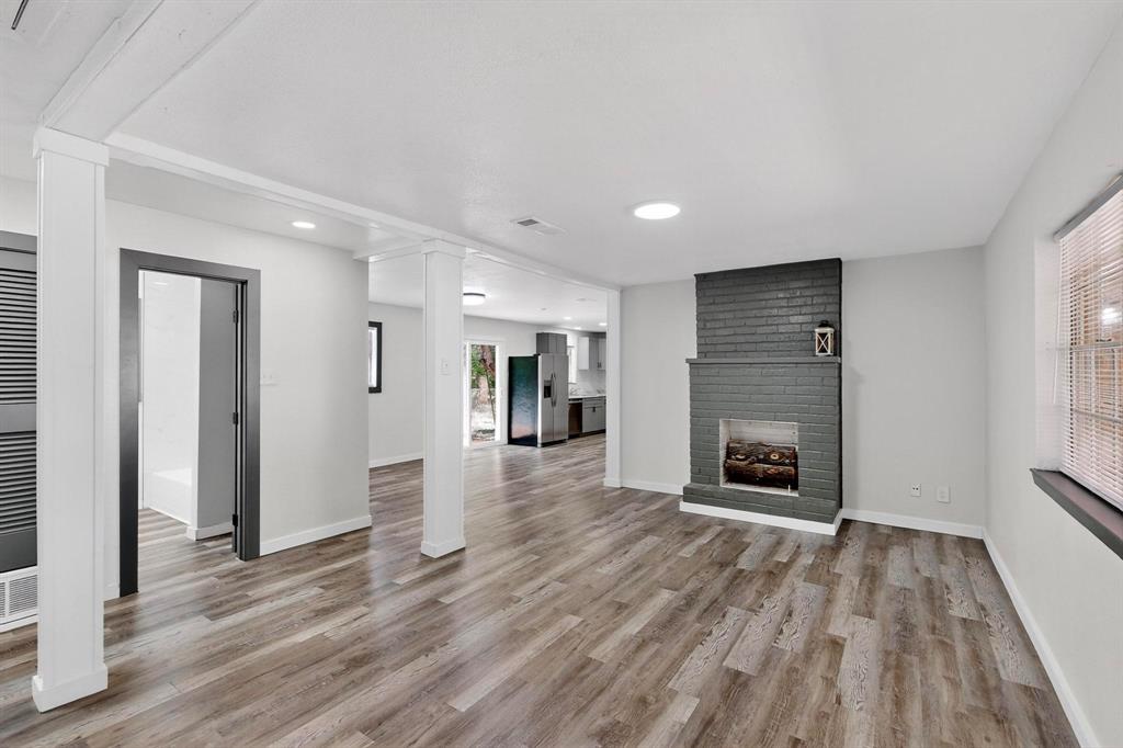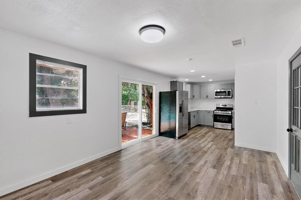 Inside, the open floor plan features brand-new luxury vinyl plank flooring that flows seamlessly throughout. The modern kitchen is equipped with a Frigidaire refrigerator with water and ice dispenser, GE gas stove, dishwasher, and microwave. Spacious living and dining areas connect effortlessly, perfect for entertaining or everyday living.
