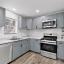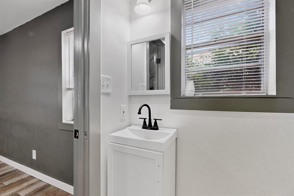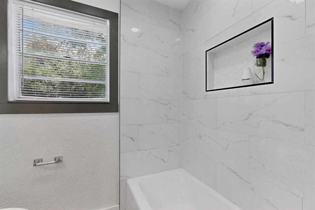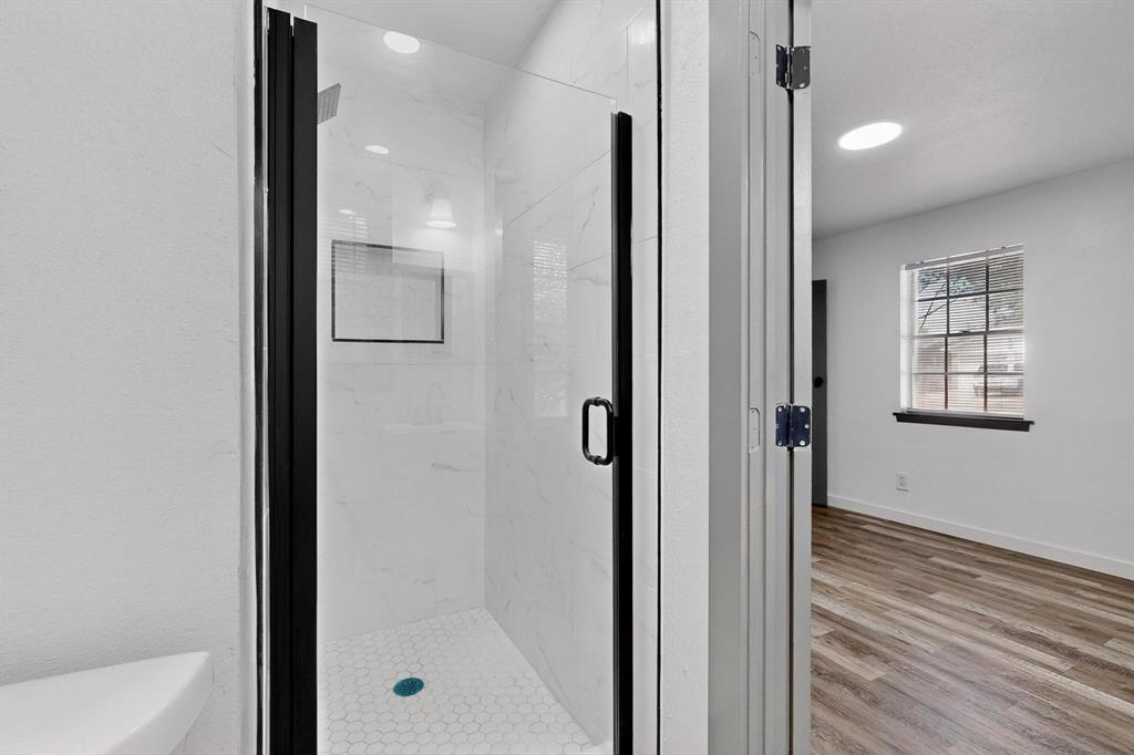 Both bathrooms have been refreshed, highlighted by a new stand-up shower with white tile surround and a relaxing waterfall shower head.