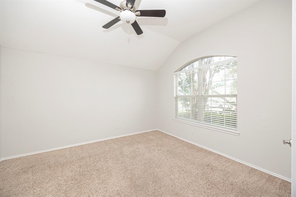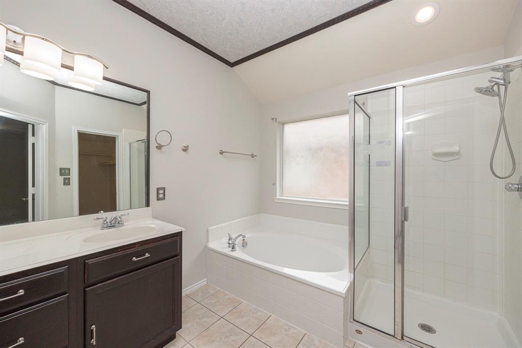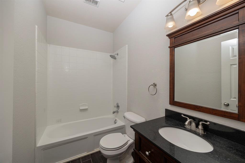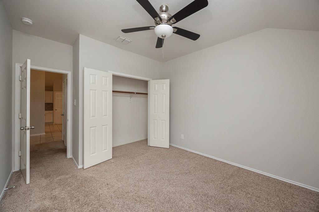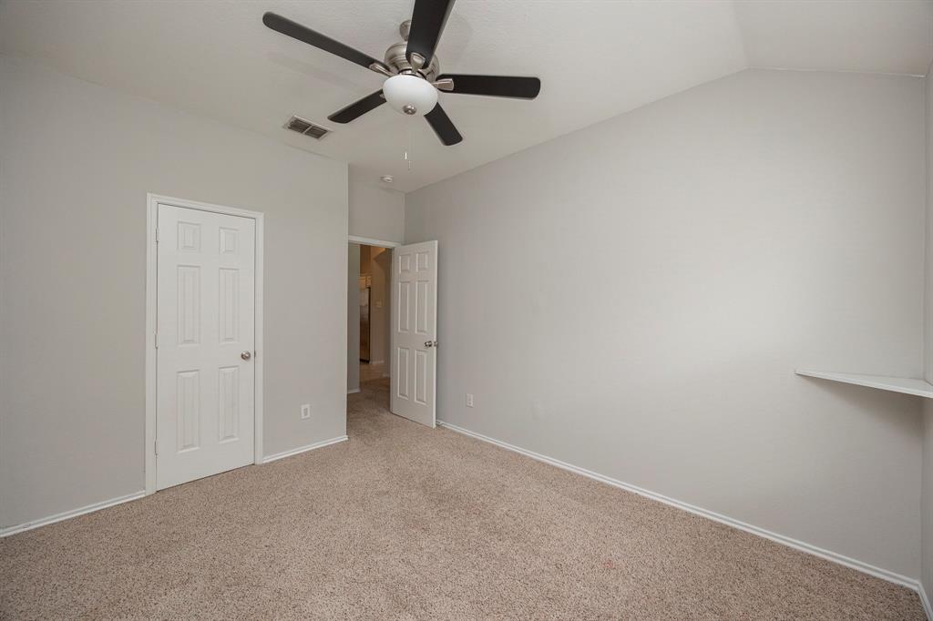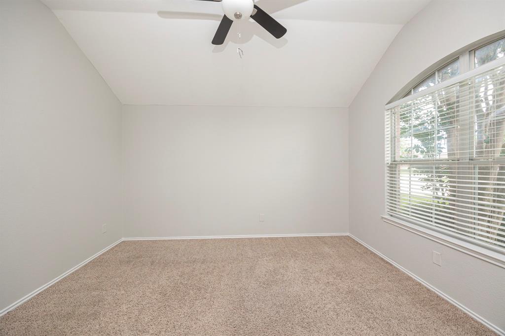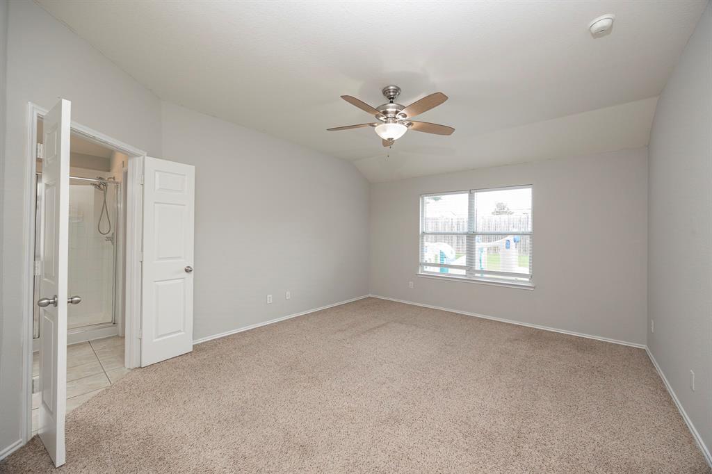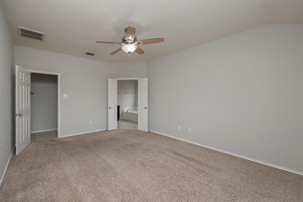 Multiple bedrooms offer ceiling fans, built-in closets, and soft gray walls.A private suite with dual access features a soaking tub, glass shower, and spacious layout—perfect for a serene retreat. The split-bedroom design offers privacy, with secondary rooms connected to well-appointed baths featuring wide mirrors and tub-shower combos. A walk-in closet and convenient laundry room add everyday ease.