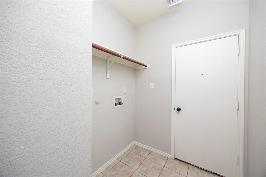 The utility space includes built-in shelving, electrical outlets, and plumbing—ready for washer-dryer setup and customized organization.