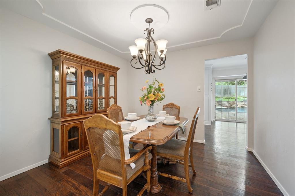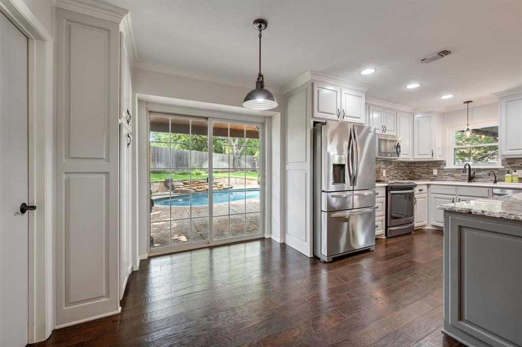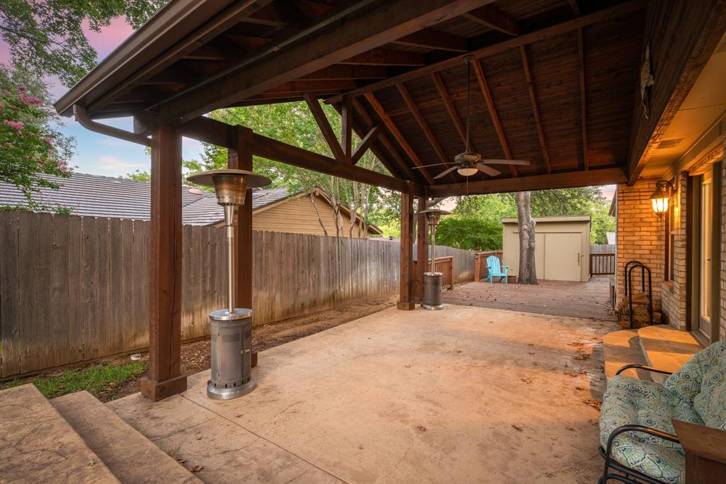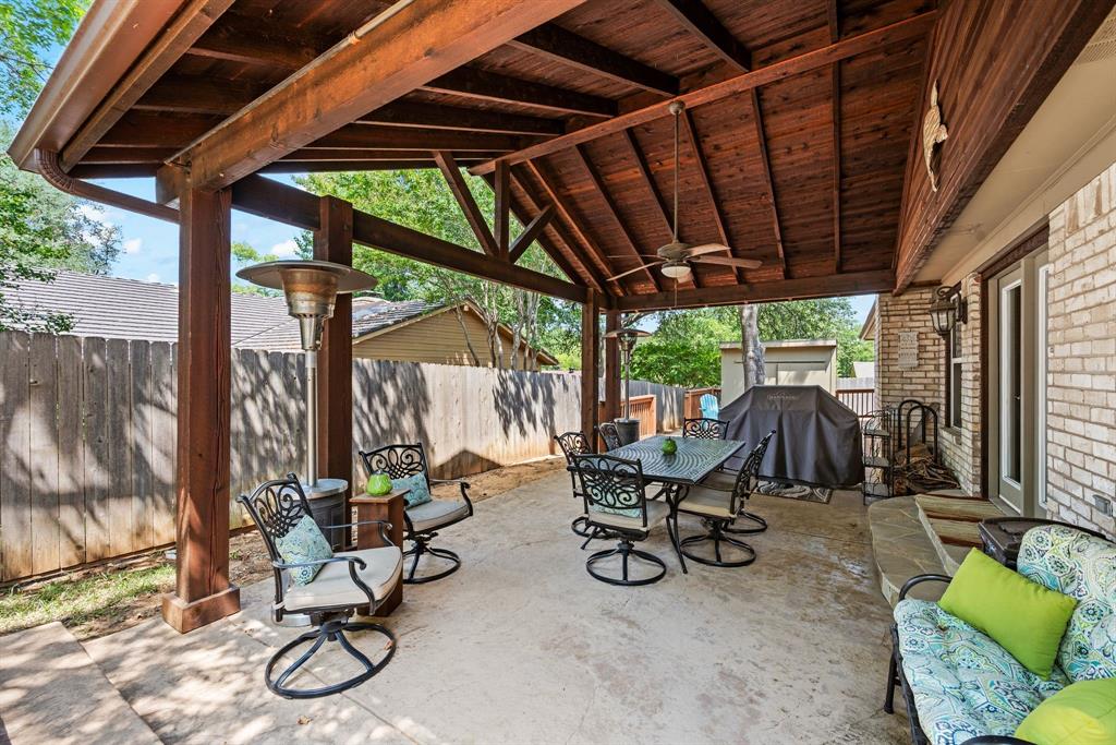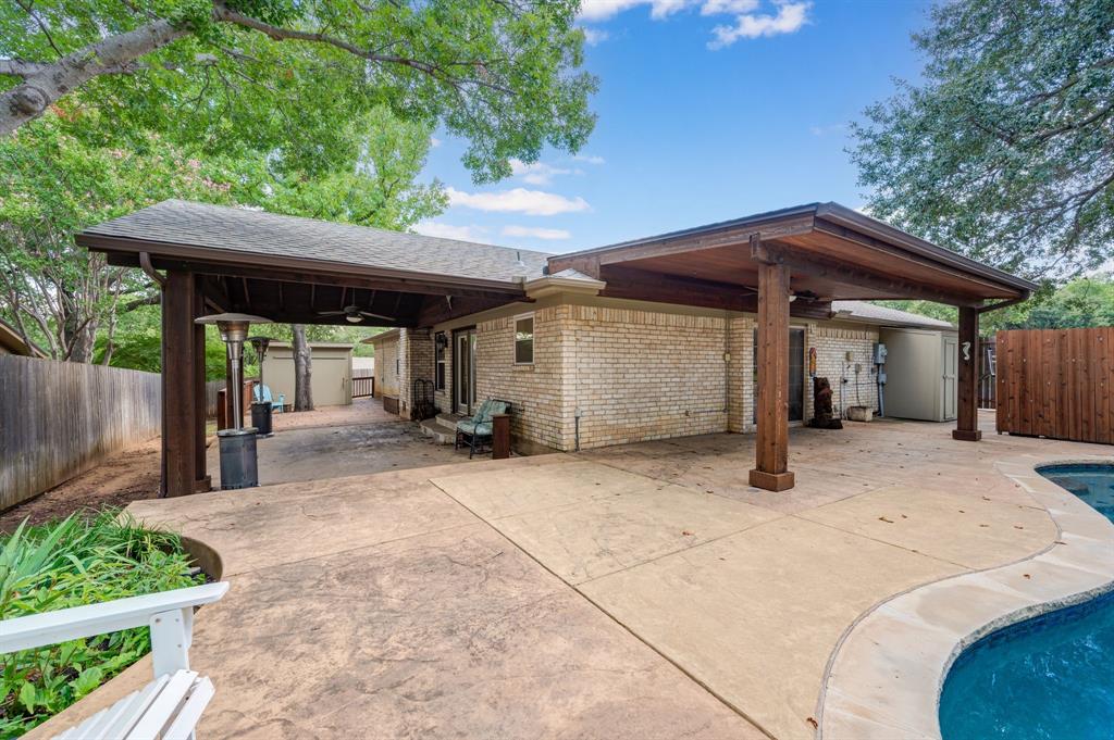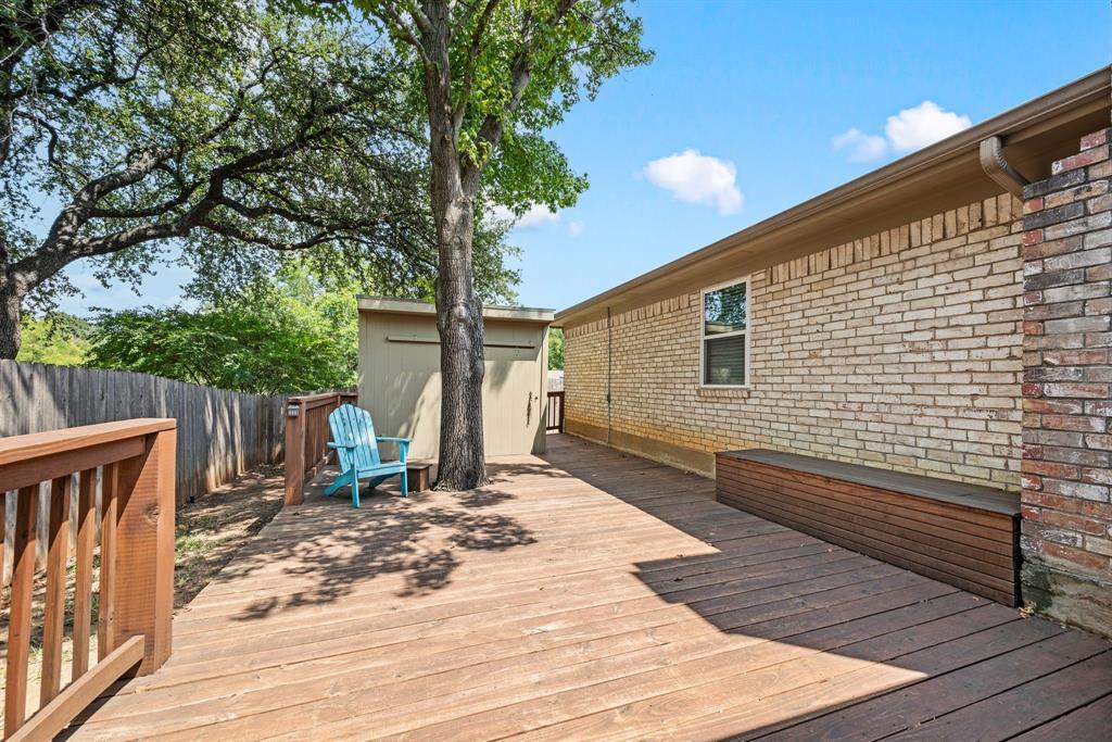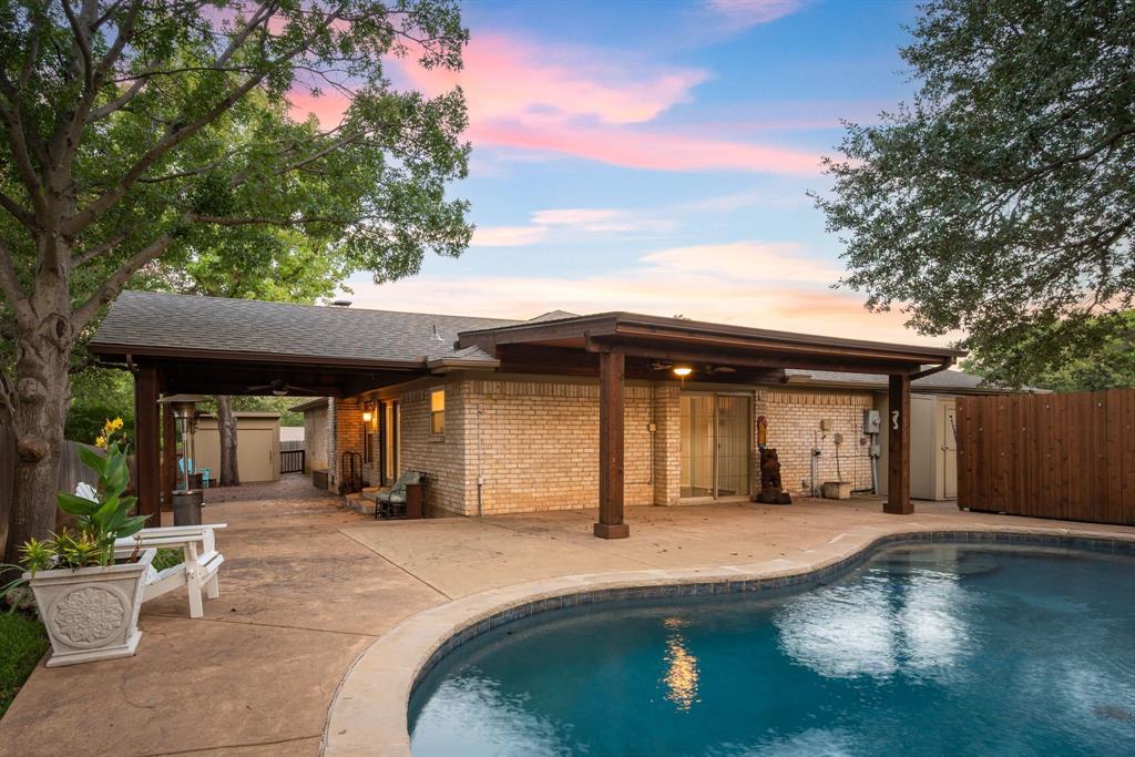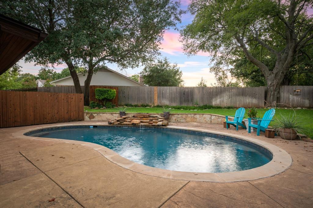 Welcome to this beautifully maintained, one story, turnkey 4-bedroom, 2-bath home on a cul-de-sac in the desirable Timber Ridge Addition. Recent updates include a new roof, PVC plumbing throughout, and new windows that bring in an abundance of natural light. Step inside to an inviting open-concept layout that seamlessly connects the living, dining, and kitchen areas lined with wood floors throughout, perfect for everyday living or entertaining guests. The kitchen offers generous cabinet space and a cozy breakfast area with views of the backyard retreat. Outdoors, enjoy the covered patios and a pergola overlooking a sparkling pool with a soothing water feature. A shed with electricity makes the ideal workshop, hobby space, or extra storage. Behind the fence, there’s ample room for boat or bike parking adding optimal convenience. Nestled in an established neighborhood surrounded by mature trees, this home offers the perfect combination of comfort, functionality, and outdoor enjoyment, making it truly a place to call home.