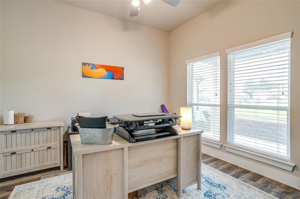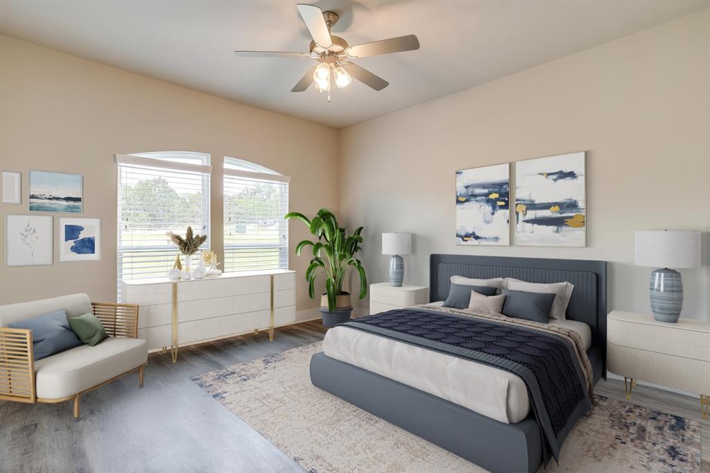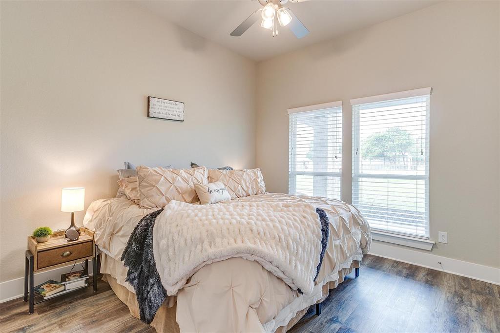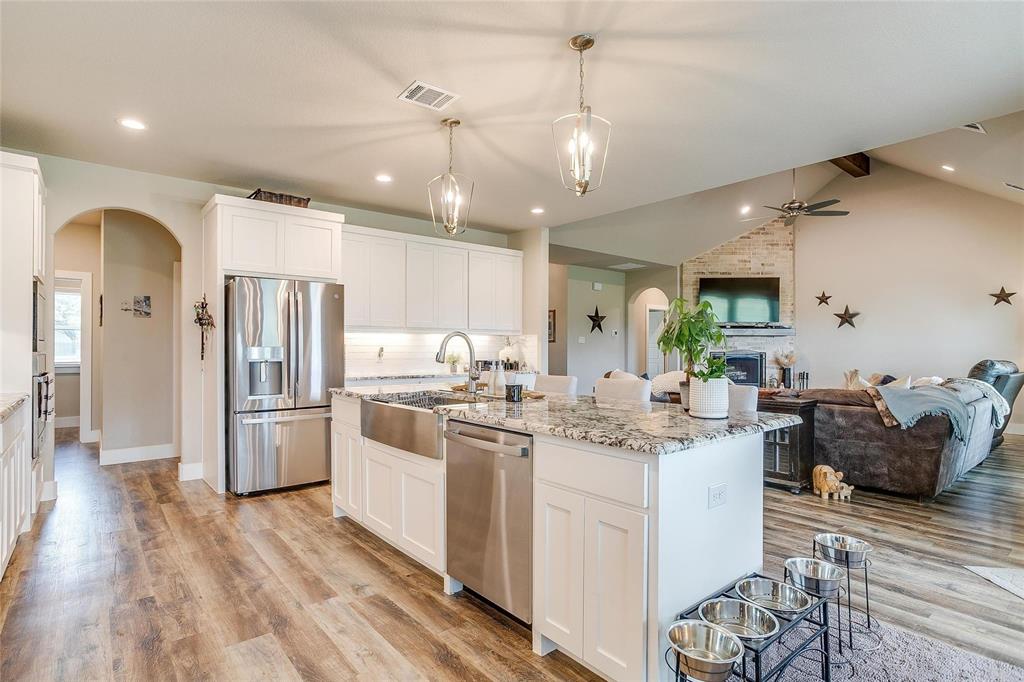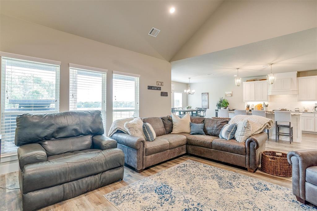 Welcome to your dream home, perfectly situated on a pristine 2-acre lot—ideal for soaking in the serenity of country living. At the front of the house there is a spacious flex room that’s perfect as a home office, playroom, or extra living area. There is beautiful wood-look flooring throughout—no carpet anywhere—offering both style and low-maintenance living. The inviting living room boasts soaring vaulted ceilings with striking exposed beams and a stunning stone fireplace that creates the perfect cozy focal point. The open-concept kitchen is a host’s dream, complete with a large center island, dedicated coffee bar, walk-in pantry, and generous cabinet space for all your storage needs. Tucked away for privacy, the primary suite offers a peaceful retreat. The spa-like ensuite bath includes dual vanities, a luxurious soaking tub, and a spacious walk-in closet. This home is loaded with thoughtful upgrades including a water softener and filtration system, in-ground propane tank, and custom blinds. Enjoy peaceful mornings and tranquil evenings on the covered back patio, where you can take in the quiet countryside. Don’t miss your chance to experience the best of country living in this move-in ready home!
