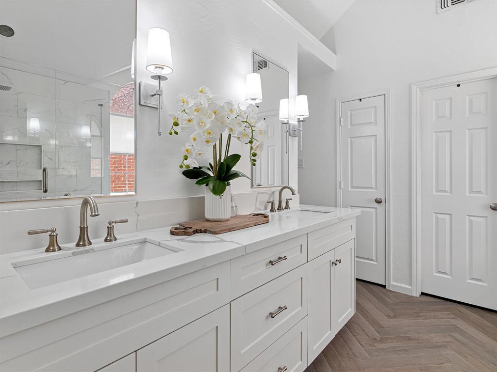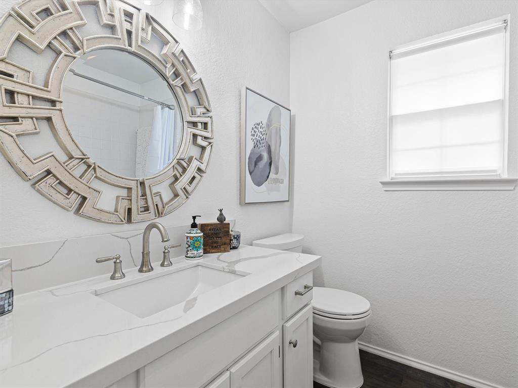 This beautifully remodeled home is a true must-see! Situated on a desirable landscaped lot in the Park Glen neighborhood in Keller ISD. Every detail has been thoughtfully curated with designer updates throughout. Both the master and guest bathrooms have been completely transformed, while the kitchen boasts luxurious quartz and granite countertops, updated cabinetry, modern hardware, and stunning new flooring throughout the entire home.