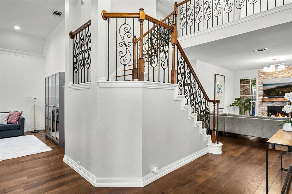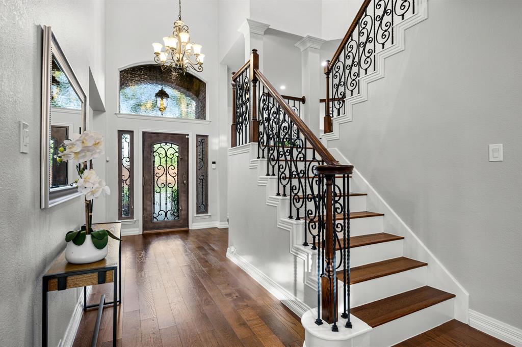 Step through a custom iron entry door into this beautifully updated home featuring split formals and an island kitchen that opens to the family room perfect for everyday living and entertaining. The kitchen showcases rich wood cabinetry, a charming bay window above the sink, a sunny breakfast nook, and has been fully remodeled for modern functionality and style.