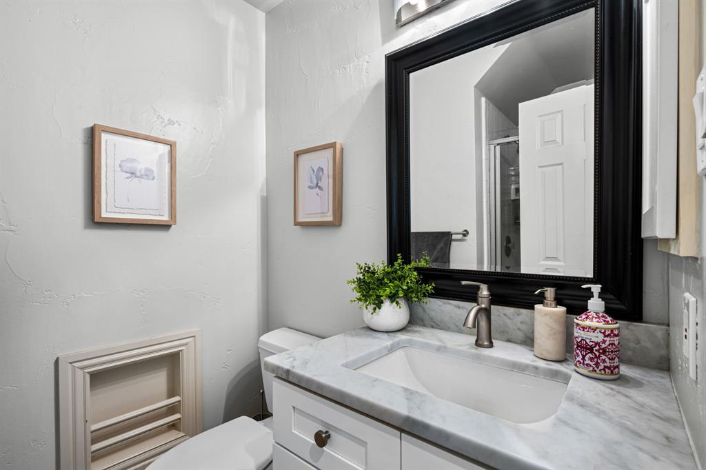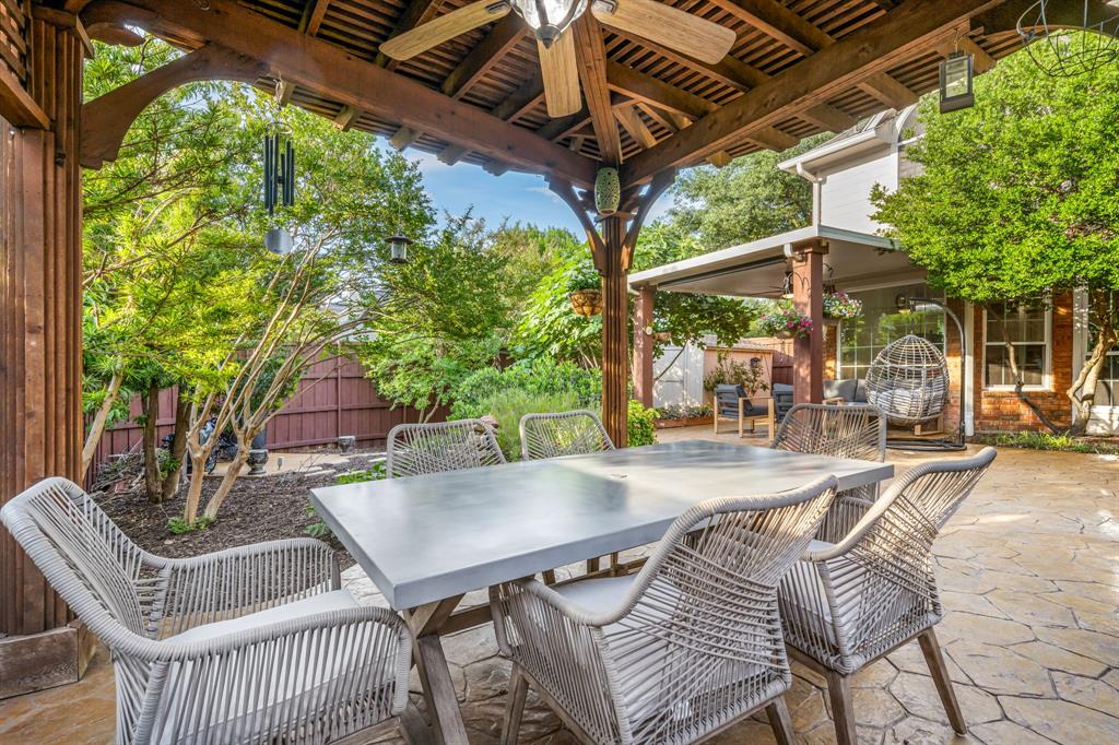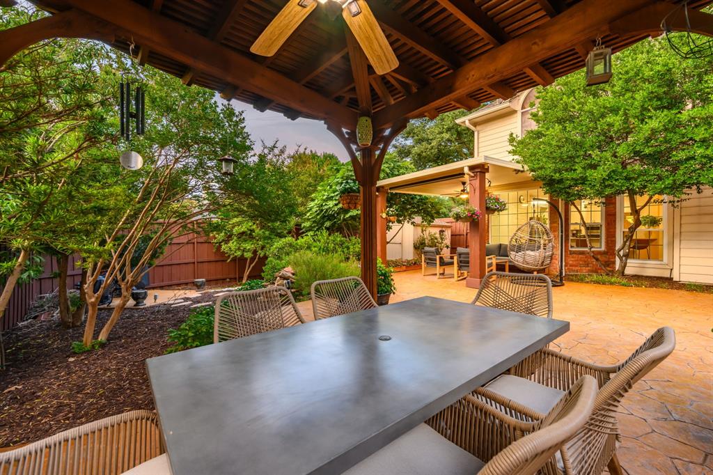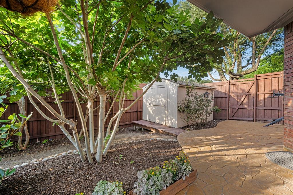 Outside is your own private paradise complete with a stamped concrete patio, lush landscaping, a solid patio cover with wood arbor, a dedicated pad for a spa, a storage shed, and mature fig and peach trees that produce abundantly each summer. Locally known as The Peach Tree House, it’s a neighborhood favorite where kids gather for fresh peaches right off the tree!