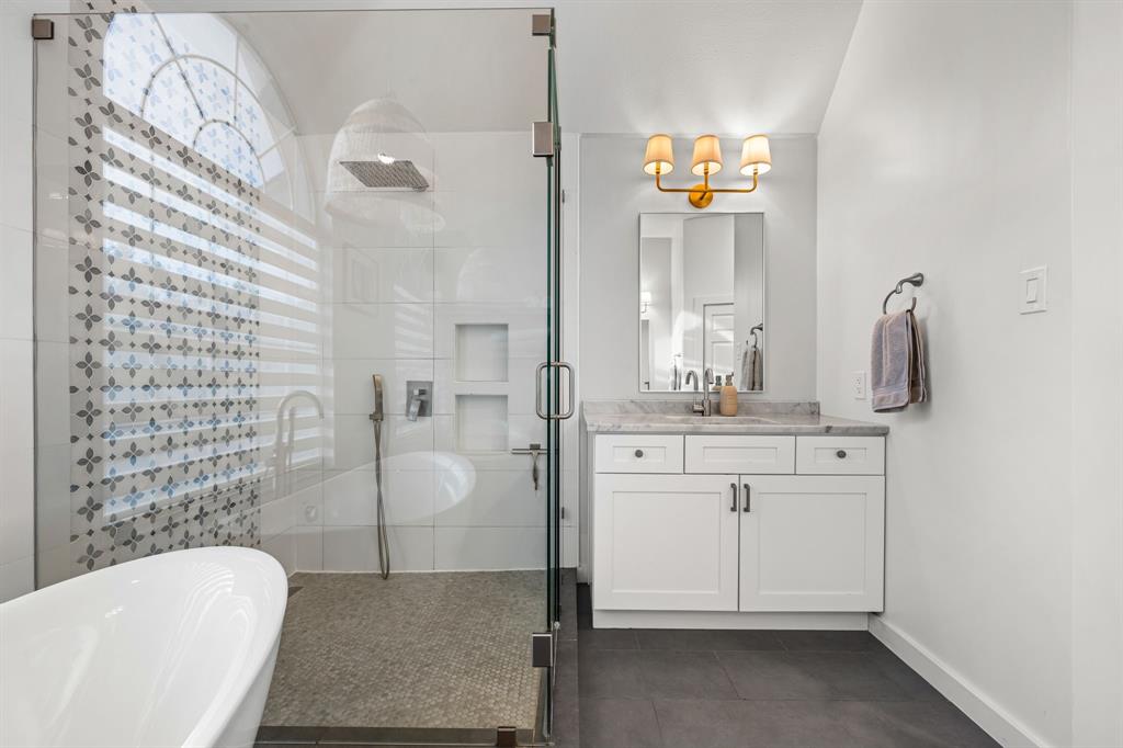 Upstairs, you’ll find a large second living area, a fully remodeled primary suite with a luxurious soaking tub and separate shower, plus two additional bedrooms and another full bath.