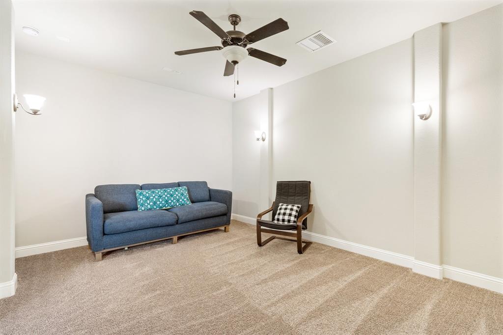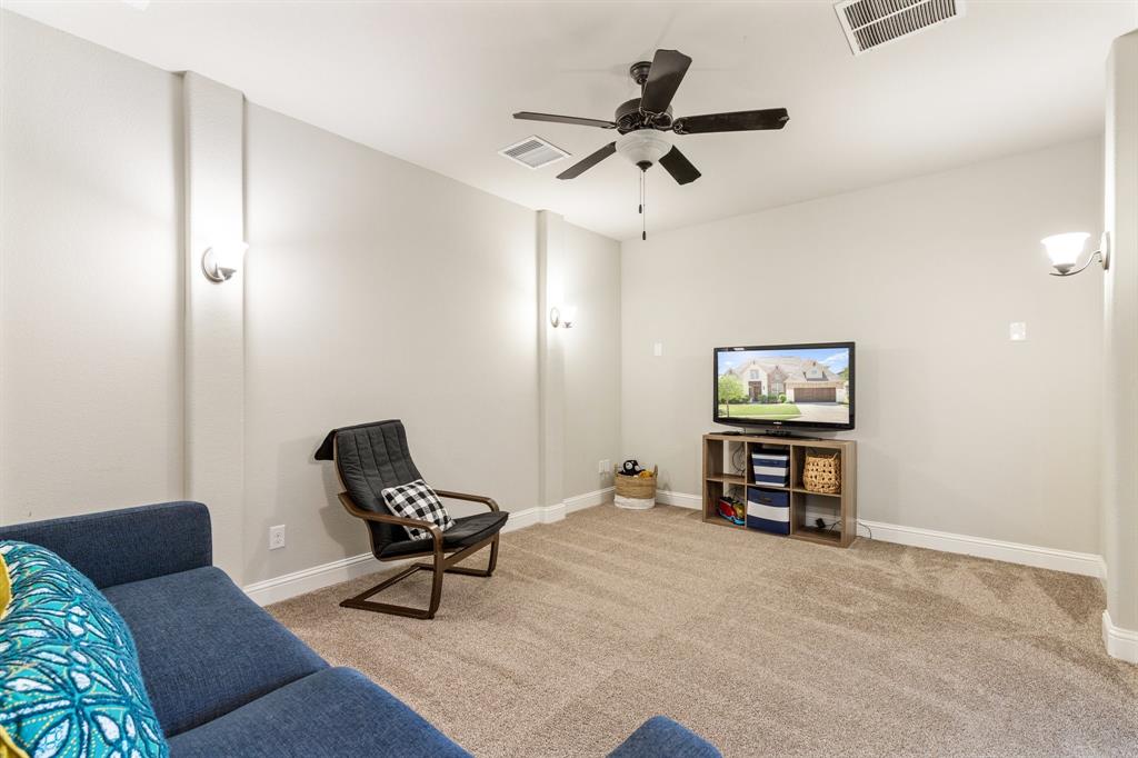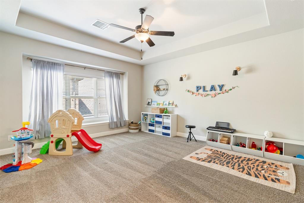 Upstairs, the home offers a spacious game room, media room, and full bath, providing multiple options for recreation or additional living space. The backyard is a blank canvas, offering the opportunity to design an outdoor space that fits a variety of needs, whether that’s entertaining, relaxing, or future improvements.