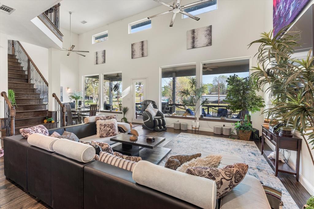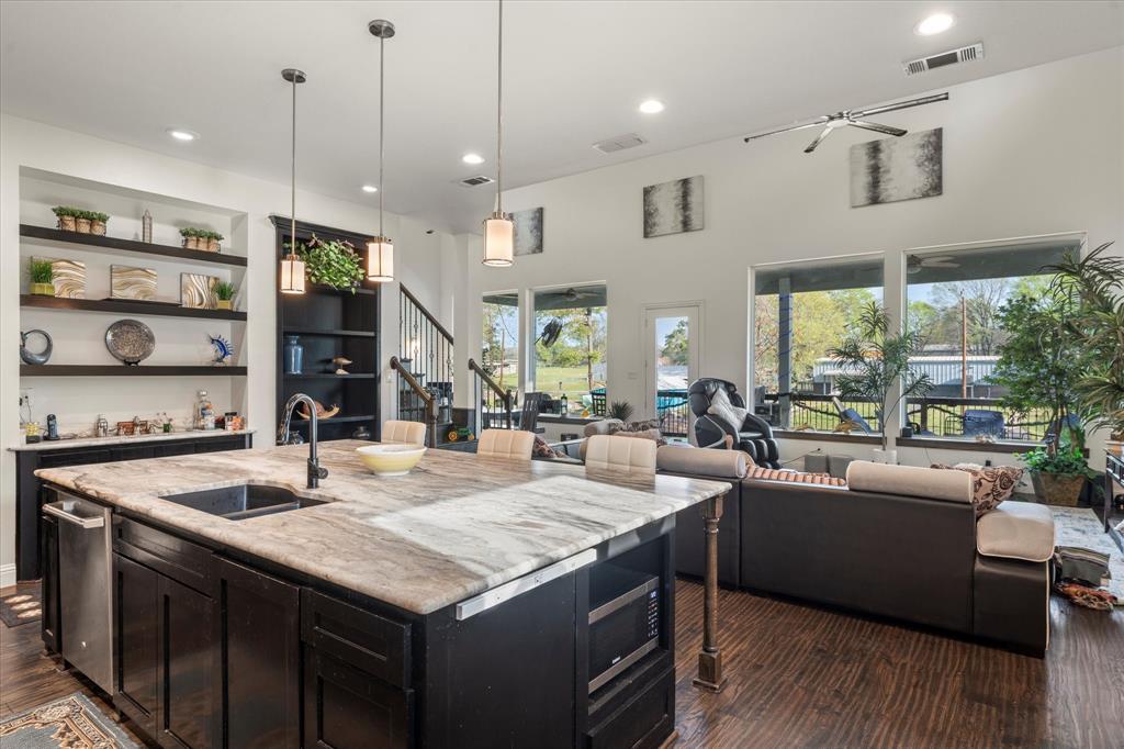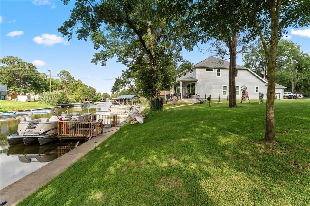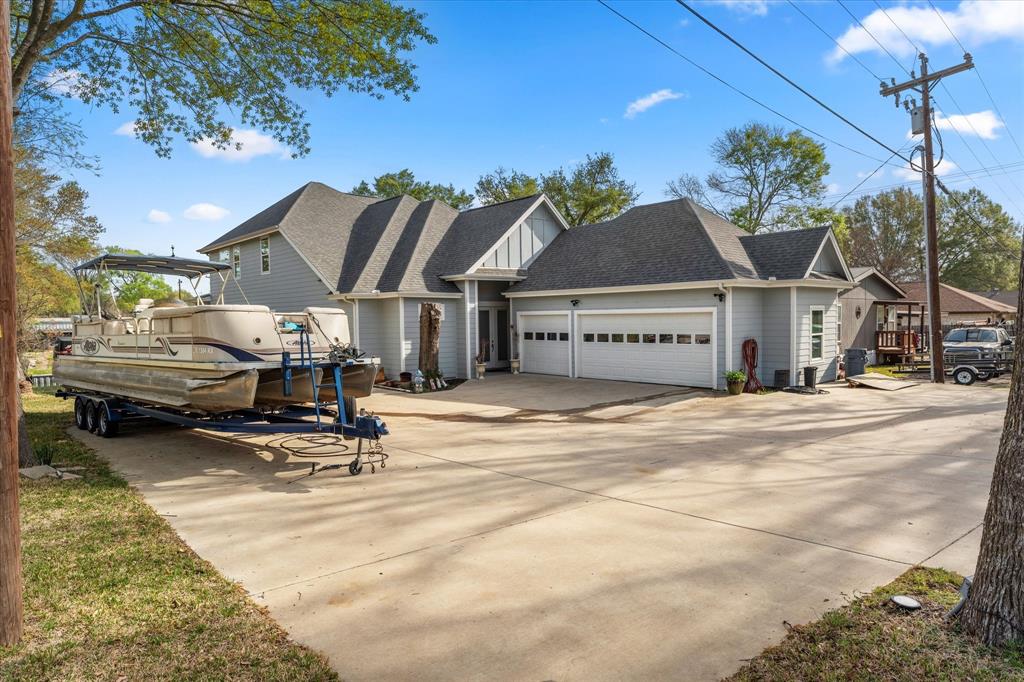 QUALITY BUILT WATERFRONT HOME ON TWO WATERFRONT LOTS BUILT IN 2020! THIS 3 BEDROOM, 2.5 BATH IS APPROX 2454 SQFT OF MODERN, LAKE DESIGN. HAS OPEN FLOOR PLAN WITH WALLS OF GLASS ON WATERSIDE. BEAUTIFUL CHEFS KITCHEN WITH GAS RANGE, DOUBLE OVEN AND HUGE ISLAND ALL COVERED IN PRETTY GRANITE. SOARING CEILING IN LIVING, MASTER DOWNSTAIRS WITH ELEGANT MASTER BATH. LARGE 3 CAR GARAGE WITH BUILT INS & ENHANCED 400 AMP ELECTRIC, LOTS OF CONCRETE FOR PARKING & PLENTY OF ROOM FOR EXPANSION WITH 2ND LOT. NO POA. CLOSE TO LONESTAR MARINA.