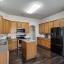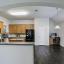 The spacious kitchen is a true centerpiece, offering ample counter and cabinet space, a large island, and a built-in computer desk. The open floor plan connects the kitchen to the dining area and living room, where abundant natural light and a cozy fireplace create an inviting atmosphere.