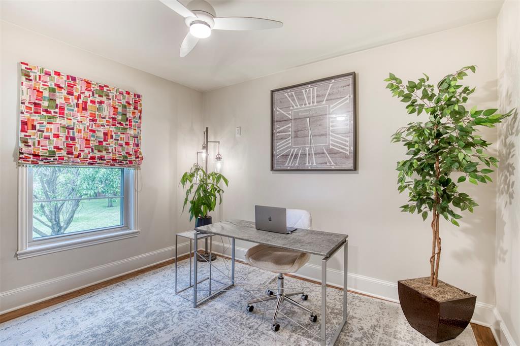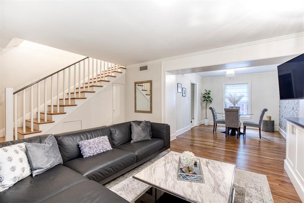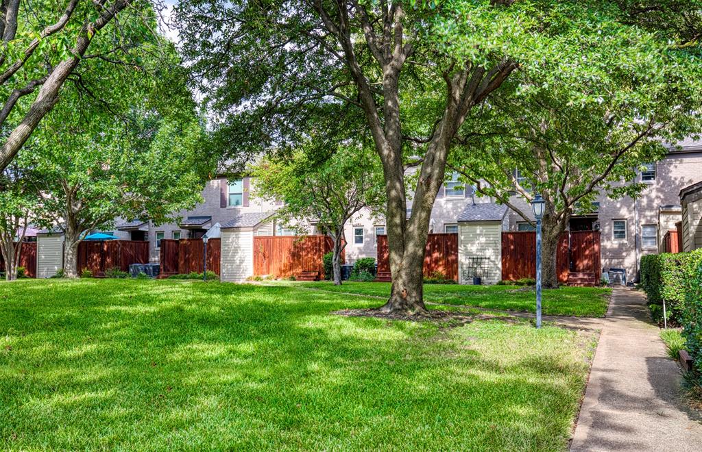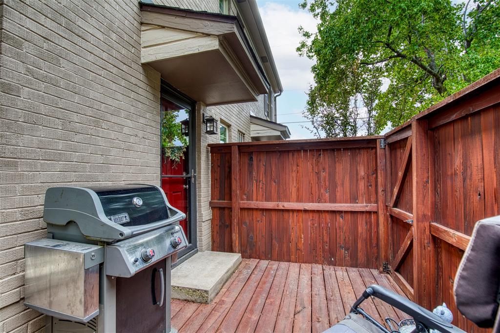 Step into modern elegance in this meticulously updated 2 bedroom, 1 & half bath condo located in the serene Bordeaux Village in the heart of Dallas. This stunning home blends timeless charm with high-end contemporary updates, featuring preserved original hardwood floors & open-concept living space designed for both comfort & entertaining. The remodeled kitchen is a chef’s dream, boasting sleek Silestone quartz counters & backsplash, custom cabinetry, Samsung® stainless steel appliances, under-cabinet lighting & a single basin sink with modern fixtures. A bright, airy dining area with designer wallpaper flows seamlessly into the living room, complete with custom cabinetry & wood shelving flanking an electric fireplace with remote start. Upstairs, the spa-like bathroom offers a frameless walk-in shower, custom vanity & chic Italian tile, echoed in the stylish half bath downstairs. Retreat to a spacious primary bedroom with dual closets, designer wallpaper & large windows overlooking the greenbelt with mature trees. A second bedroom upstairs (currently used as a study) has built-in shelving, closet & a laundry closet. Custom window treatments, updated paneled doors & luxury light fixtures elevate every space. Recent upgrades include energy-efficient low-E vinyl windows, updated plumbing & electrical, sleek staircase railings & a 2025 roof. Enjoy a private, fenced back patio with a storage unit and direct access to green space. A designated covered parking space is included. Community perks include a sparkling pool, clubhouse, walking paths, gardens, & quaint lampposts. Ideally located just minutes from Highland Park Village, SMU, Dallas Country Club, Love Field & premier shopping like Whole Foods, Trader Joe’s & Central Market. HOA covers amenities, grounds maintenance, water, sewer, trash, exterior pest control & blanket insurance. This turnkey condo offers refined living in one of Dallas’s most charming neighborhoods that’s low maintenance lock & leave—don’t miss it!