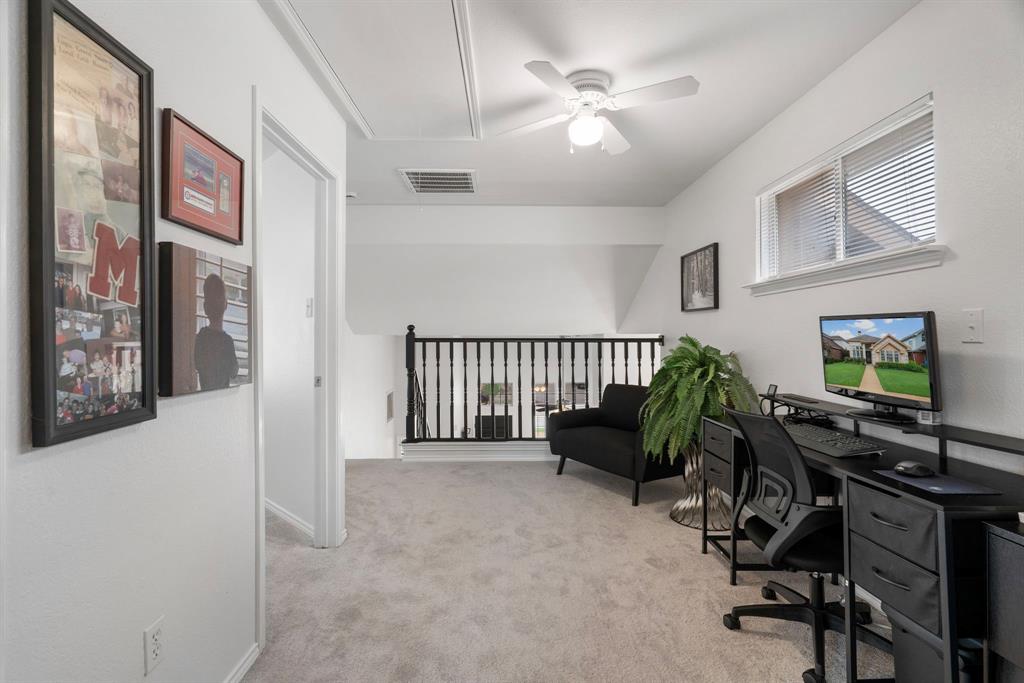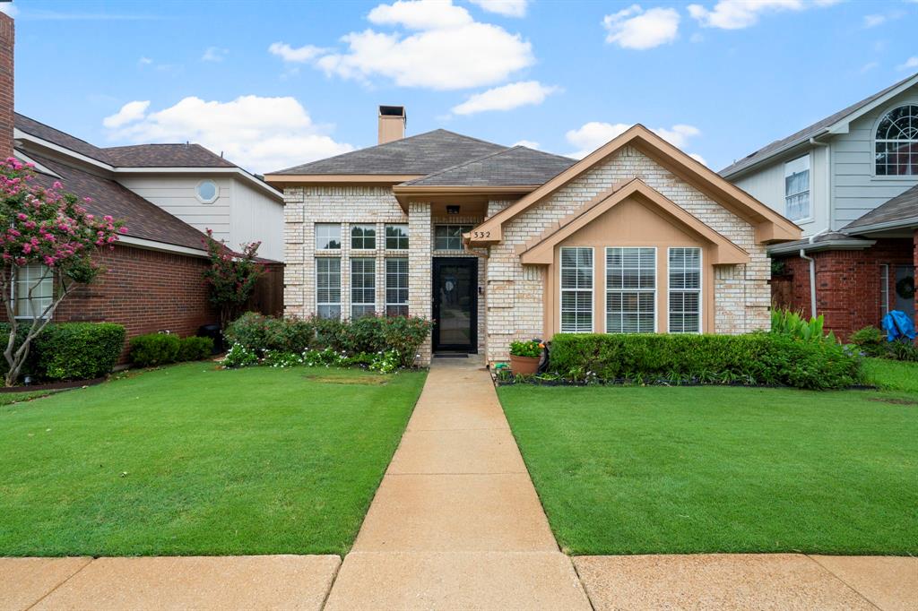 Updated home with 3 bedrooms and 2.5 baths, new roof in 2023. Primary on the first floor. Large secondary bedroom upstairs, loft and more. Home offers highway quick access to 121, 35, George Bush and minutes to DFW airport. Highly sought after and top rated school district. See thru fireplace, Updated paint colors,Primary bath with stand alone tub, glass enclosed shower, walk in closet, quartz counters. Kitchen with SS sink, white cabinetry, quartz countertops, light and bright. beautiful floral landscaping, grass yard is so pristine that you will think it is a golf green. Pride in ownership shows here. Move right in. Everything has been updated for you!