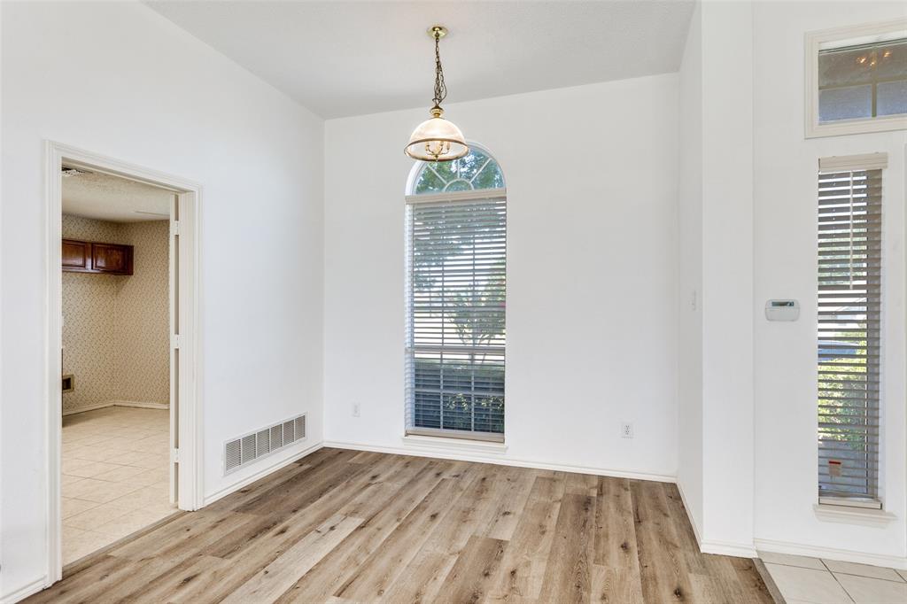 A one-owner treasure lovingly cared for and ready for its next owner to enjoy! Situated on a spacious corner lot, this home offers an oversized yard with a wonderful patio—perfect for entertaining. Inside, the versatile floor plan feels larger than the square footage, with abundant windows filling the home with natural light. The living room features a cozy wood-burning fireplace and a wall of windows overlooking the backyard. The kitchen is spacious with room for a breakfast table and plenty of counter space. This home offers flexibility with two dining areas or the option to create an oversized living space, complete with room for a desk or home office. The split-bedroom layout provides privacy, with a generous primary suite offering dual sinks, a separate shower, garden tub, and walk-in closet. Fresh paint throughout, no carpet, and updated luxury vinyl and tile flooring make this home move-in ready. Conveniently located in the heart of Garland—minutes to Hwy 66, George Bush, shopping, restaurants, and within Garlands choice of schools. This one is a must-see! Don't miss it!
