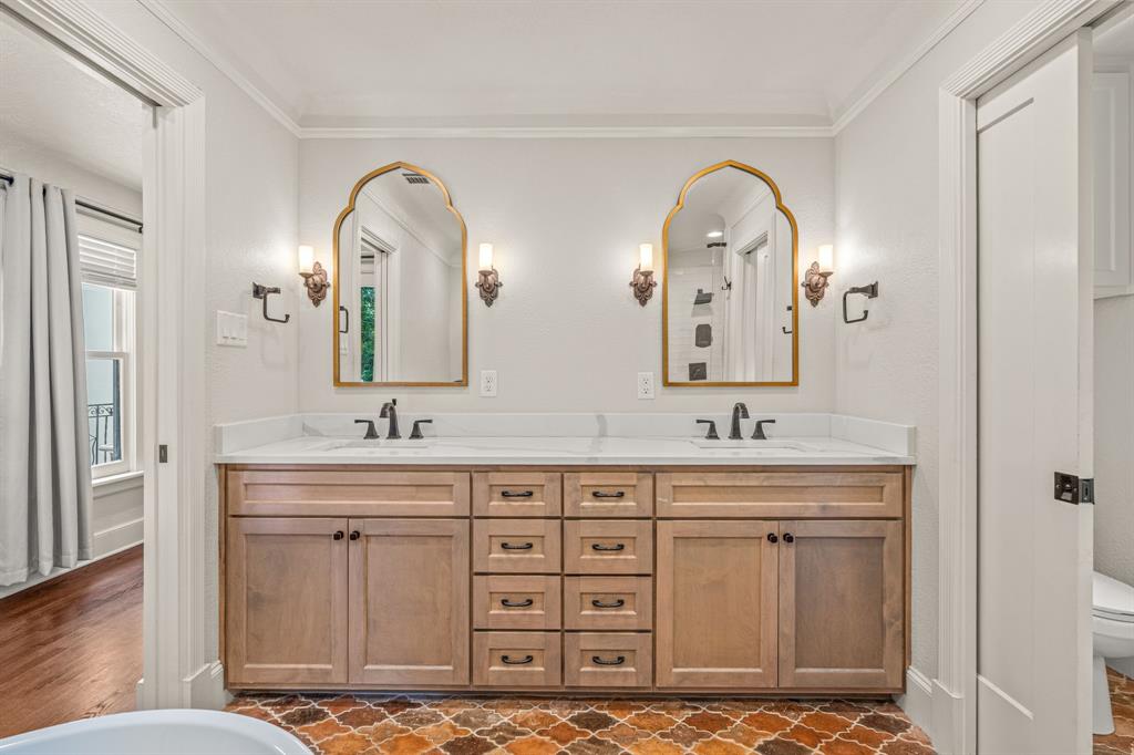 As one heads upstairs, they can chose between two convenient staircases. Two bedrooms at the front of the home share a bath and are full of natural light. The gracious primary suite provides access to a private balcony, a wall of windows, plus a fully updated bath with dual sinks and large closet. A flex space on the third floor makes for a convenient office, storage area, or playroom.