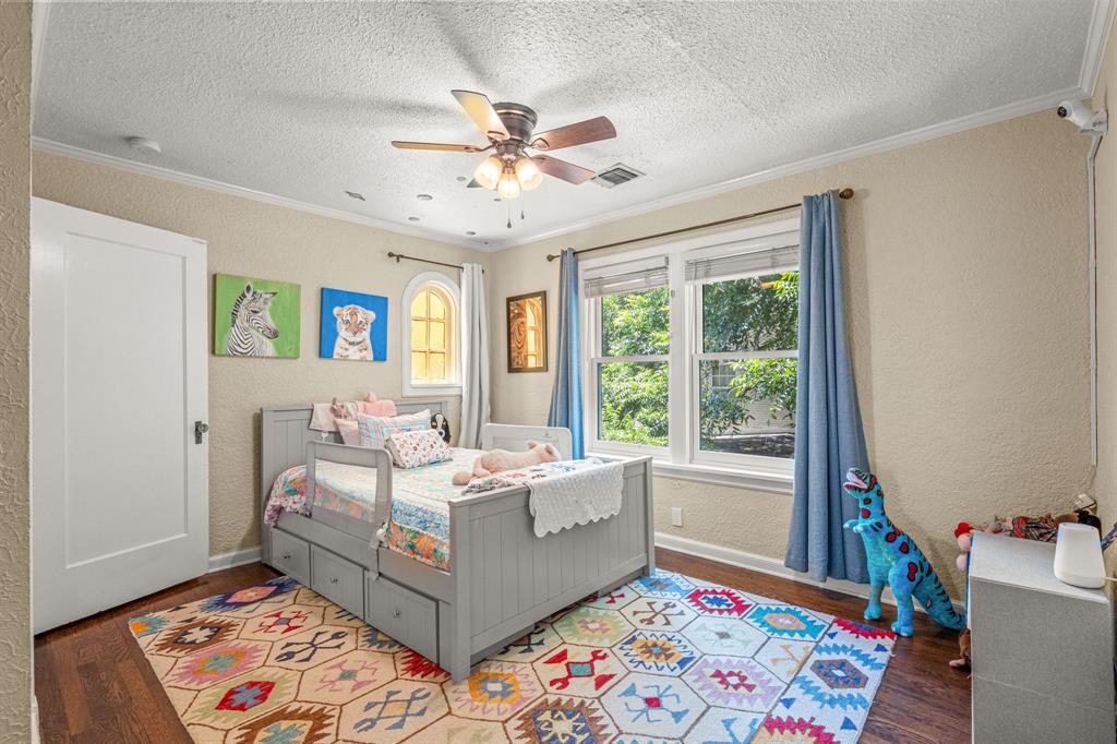 Outside, the large covered patio allows for various entertaining spaces including outdoor dining and seating. The backyard is large, allowing for any gardener to make it their own or for wonderful play and activities.