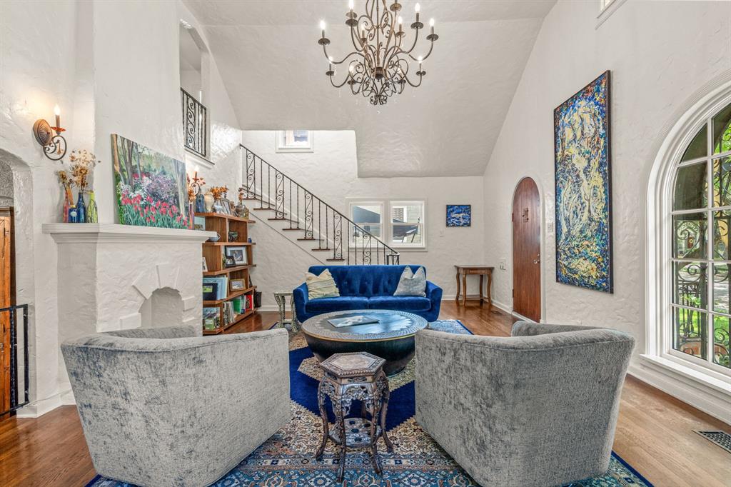 A truly special opportunity on a gorgeous, oak-lined street in the heart of vibrant Berkeley, 2228 Wilshire Boulevard is a warm and inviting home with unique architectural features, immense charm, and modern conveniences. A double-height living area is grounded by a stately fireplace and is warmed by large windows with views to the mature oak trees in the front yard. Additionally, a Juliet balcony from above creates a special moment. The intimate dining room allows for personalized entertaining and memory making in a warm environment. An updated kitchen includes a large island, as well as a spacious breakfast area with large windows providing views to both the front and back patios. Completing the downstairs is an oversized family room, a guest bedroom with full, updated bath, and a utility room.