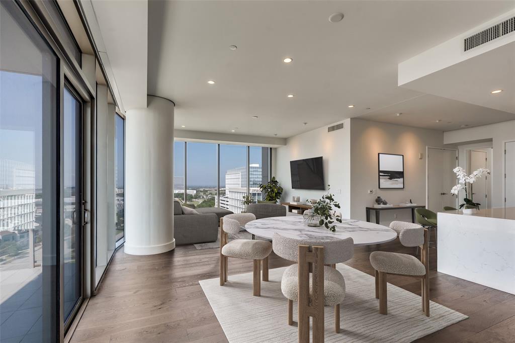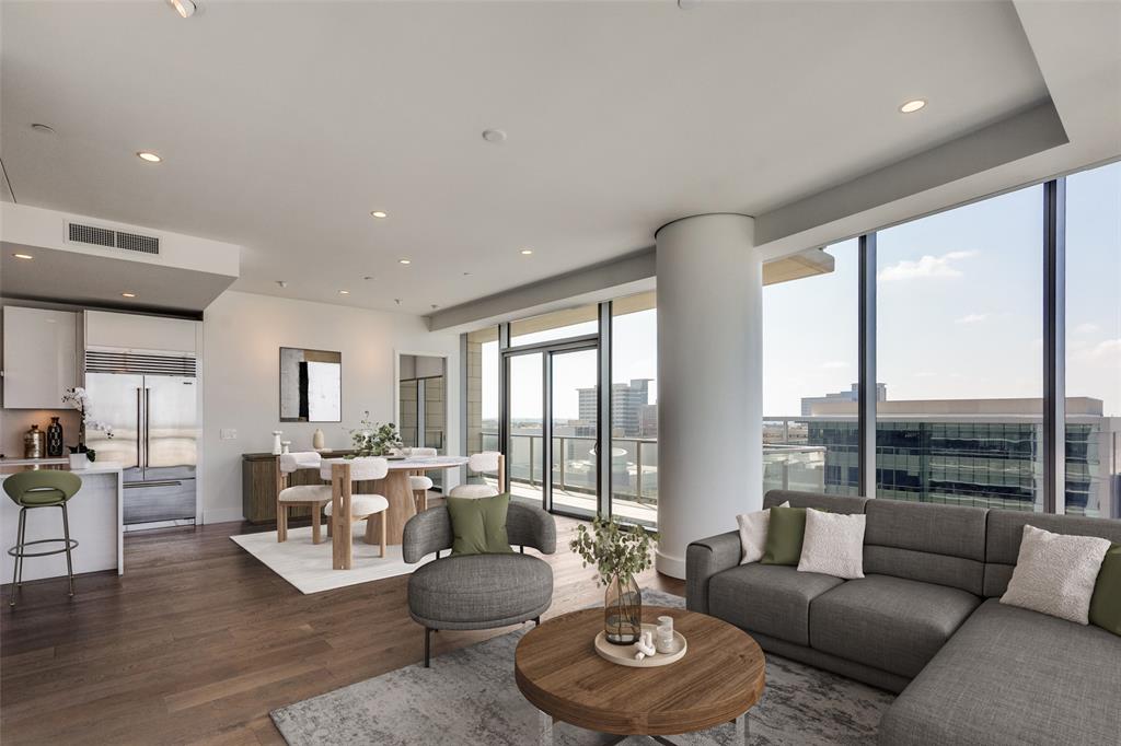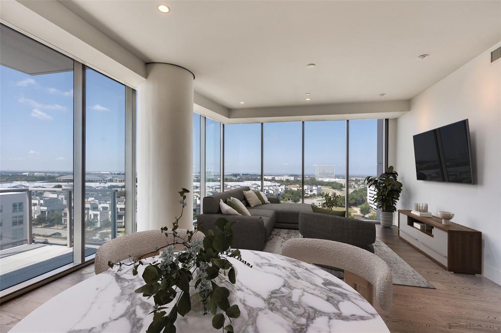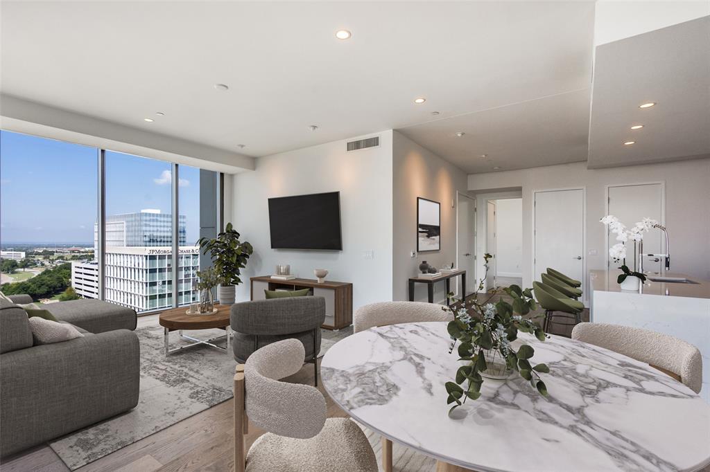 Windrose Tower is a luxury 27 floor high-rise residence that defines luxury living and offers access to some of the finest amenities including a 24 hour concierge service, state of the art fitness center, rooftop pool, business center, valet services and much more. This absolutely gorgeous 9th floor corner unit faces south and has an abundance of natural light. Wonderful Kitchen with large island with seating, generous amount of cabinetry and top appliances. The living area is impeccable and is perfect for entertaining with sliding doors opening to balcony. Primary Suite offers serene views and opens to a luxurious spa-like Bath with soaking tub,oversized shower,dual vanities and walk-in closet. The 2nd Bedroom is perfect for guests or a home office and offers a full private bath. The condo includes two assigned parking spaces and an assigned storage unit. Legacy West is just a short walk across the street from the Windrose Tower and offers the best of dining, shopping and entertinament! An excellent option for both personal use and investment potential.