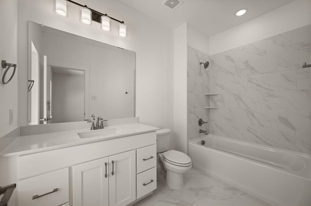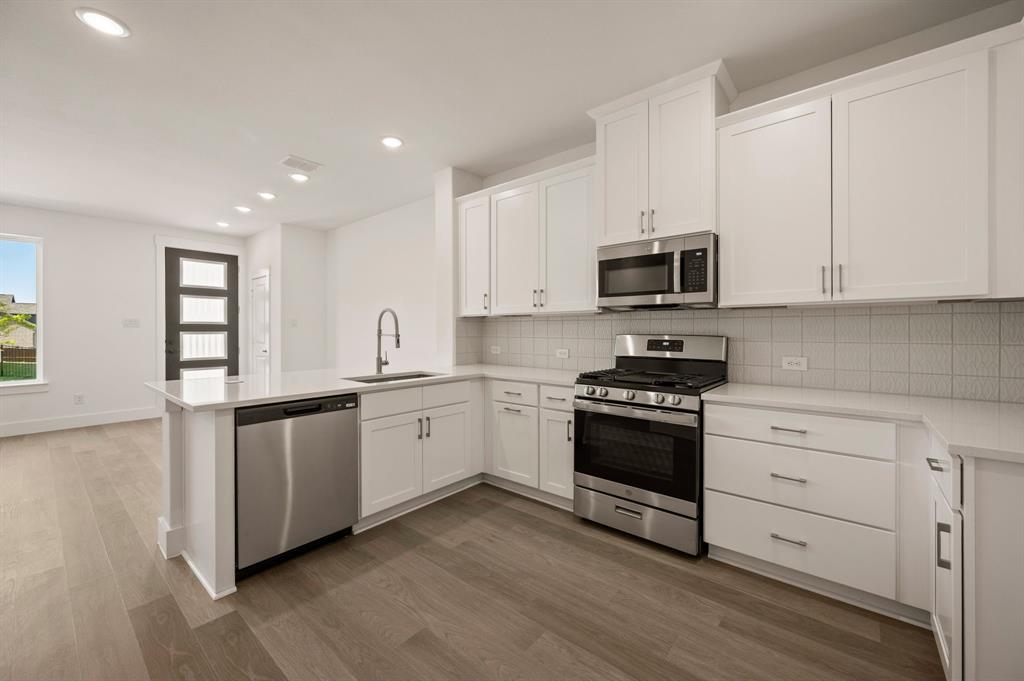 CADENCE HOMES BELLA floor plan. Chic 2 Story townhouse floor plan highlights include 2 Car Garage, Open-Concept Floor Plan, 2nd Floor Laundry, Private Guest Bath, and more! Welcome to modern townhouse living with the elegant Bella Modern floor plan. Boasting 2 bedrooms, 2.5 bathrooms, and a generous 1569 square feet, this floor plan offers the perfect blend of urban convenience and contemporary comfort. Upon entry, you'll be greeted by an open-concept living, dining, and kitchen area, designed for seamless entertainment and relaxation. The U-shaped kitchen features a walk-in pantry, providing ample storage space for all your culinary needs. A quaint powder room adds a touch of sophistication to the main floor, while the owner's entry from the rear 2 car garage ensures privacy and accessibility. Venture to the second floor, where you'll find a luxurious owner's suite plus a sunlit secondary bedroom with walk-in closet and a private full bath, perfect for accommodating guests or setting up a home office. The convenience of a second-floor laundry room simplifies your daily routine, offering practicality and ease of use. MOVE IN READY NOW!
