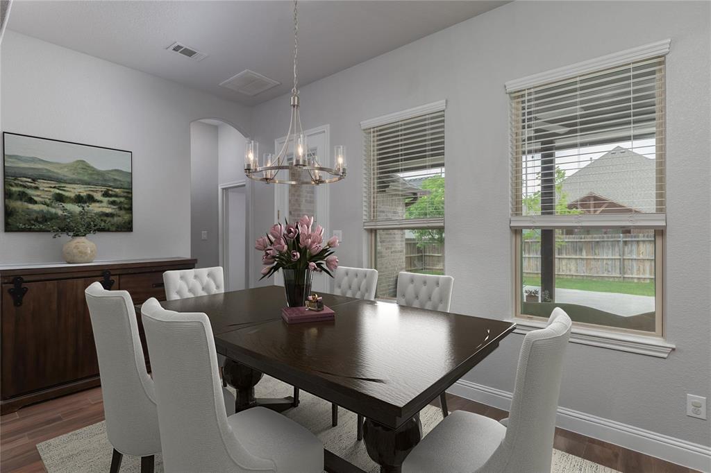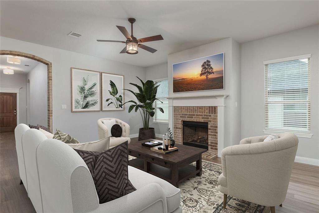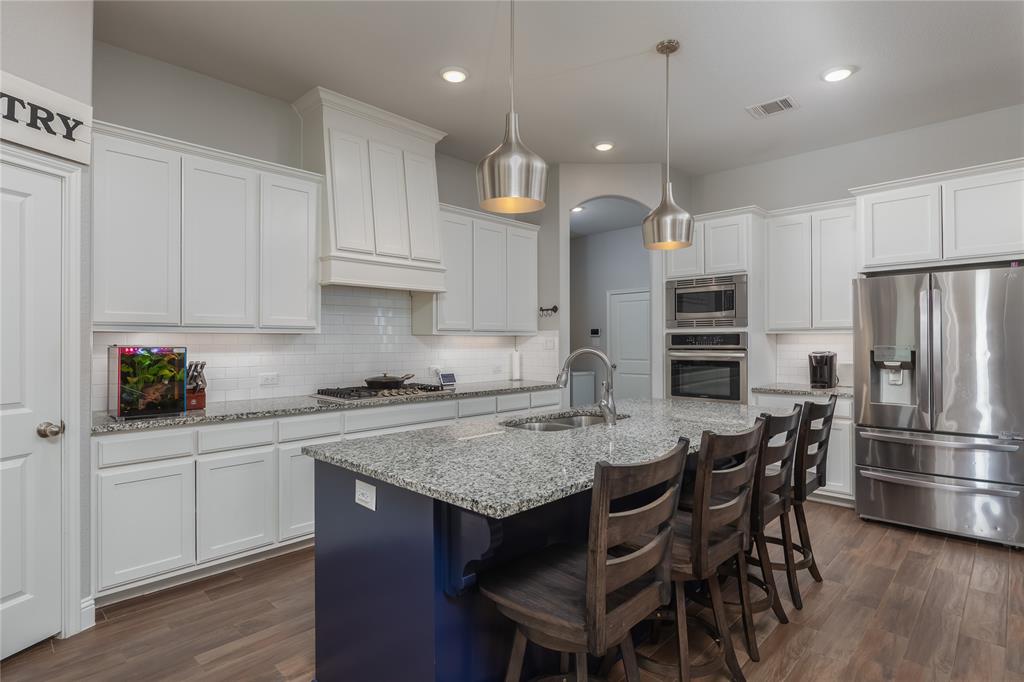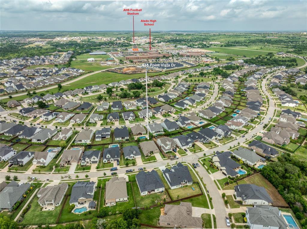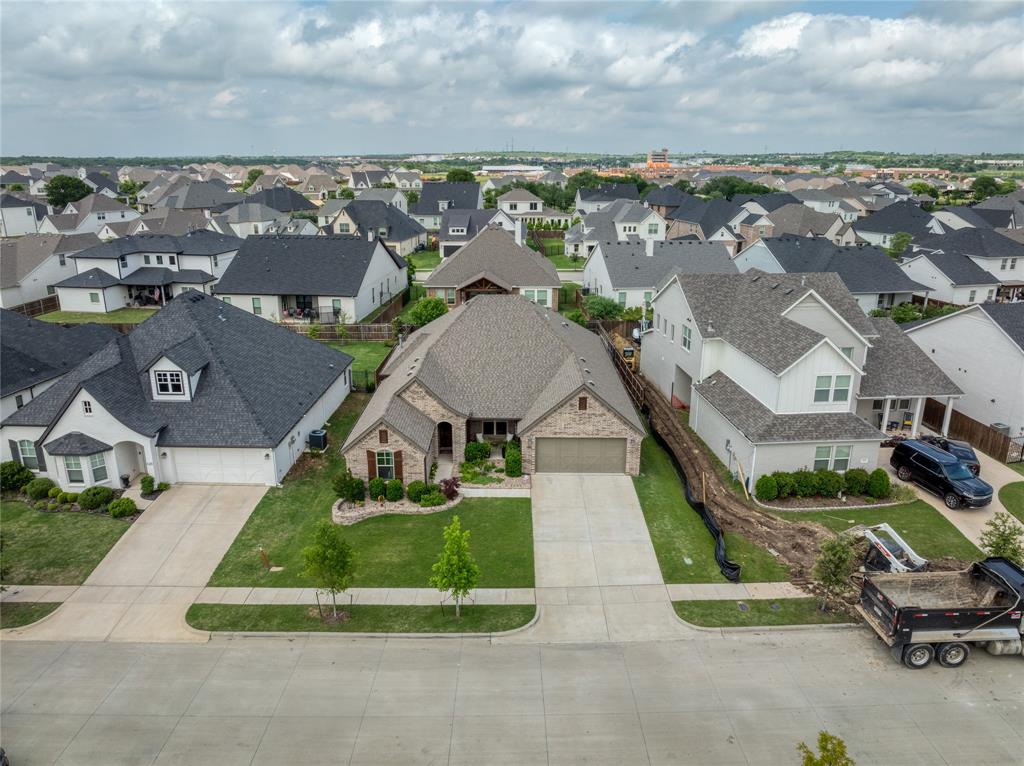 Welcome to this stunning 4-bedroom, 3-bath Clarity Home nestled in the highly desirable Point Vista Section of the Parks of Aledo community. With outstanding drive-up appeal, a charming covered front porch, and lush landscaping, this home welcomes you with warmth and style from the moment you arrive. Step inside to a bright, open floor plan featuring a bricked archway leading into the spacious living room. Anchored by a cozy brick fireplace with gas logs flanked by large windows, the living area is filled with natural light and flows seamlessly into the gourmet kitchen. The kitchen is designed to impress with crisp white cabinetry, granite countertops, an expansive island, a gas cooktop, double ovens, and a dining area. The private primary suite is a peaceful retreat with vaulted ceilings, dual vanities, walk-in shower, large soaking tub and his and hers walk-in closets. Three additional bedrooms offer flexible living options, while a dedicated office with built-in cabinetry provides a perfect workspace. Additional features include an oversized utility room, mudroom with lockers and space for an additional fridge and freezer. The backyard ready for your future dreams—already plumbed for a gas and equipped with a 220V outlet for a future hot tub. The attic is decked for added storage, offering practical solutions for everyday living. Living in Parks of Aledo means access to 150 acres of beautifully manicured green spaces and top-notch amenities, including playgrounds, shaded pavilions, disc golf course, wild tree forts, a dog park, community gardens, and scenic hike-and-bike trails. Enjoy minutes to virtually anywhere convenience, with easy access to DFW Airport, Alliance Corridor, Sundance Square, Central Market and local shopping. Located within the award-winning Aledo ISD, this home offers the perfect blend of luxury, community, and convenience. Don't miss your opportunity to own a move-in-ready home in one of Aledo’s most sought-after neighborhoods.