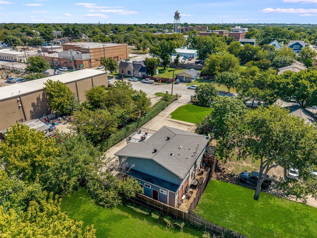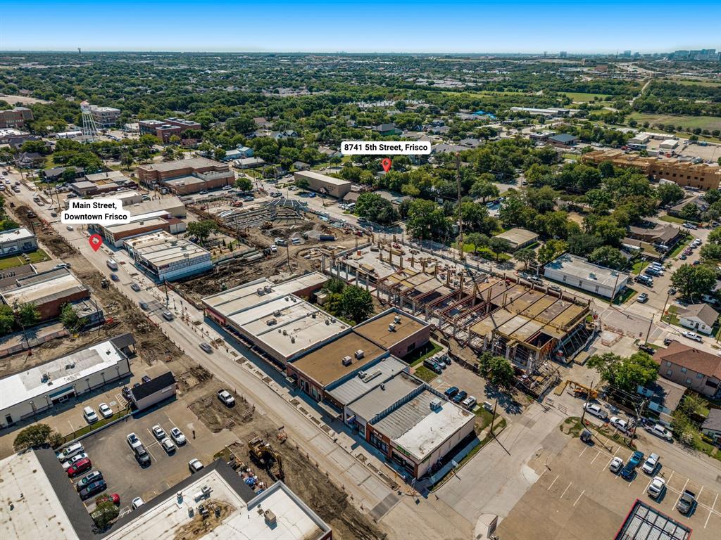 RARE opportunity to own prime commercial space in the vibrant Downtown Frisco Rail District. This unique property offers flexible Old Town Commercial zoning that allows for residential, commercial, and live or work use—making it the perfect fit for business owners, investors, or entrepreneurs seeking both visibility and versatility. The property is move-in ready with extensive upgrades and features. The main level features two building spaces: one offering two living or office areas, a full kitchen, and bathroom, and the other building providing an office area with separate storage area. On the second level, you’ll find a one-bedroom suite with a living area, full kitchen, bathroom, and separate storage room. Beautifully landscaped yard enhances the charm and professional curb appeal. Downtown Frisco’s continued investment of more than $80 million in new infrastructure improvements, scheduled for completion by May 2026, makes this location even more attractive for long-term growth. In addition to on-site and street parking, a brand-new five-level parking garage with 451 spaces is currently under construction and expected to be completed by quarter one 2026, all within walking distance of the property. Situated on 5th Street, just two blocks from Main Street, this property offers outstanding visibility, accessibility, and positioning in one of the fastest-growing and most desirable markets in North Texas. Buyer to independently verify zoning and permitted uses.