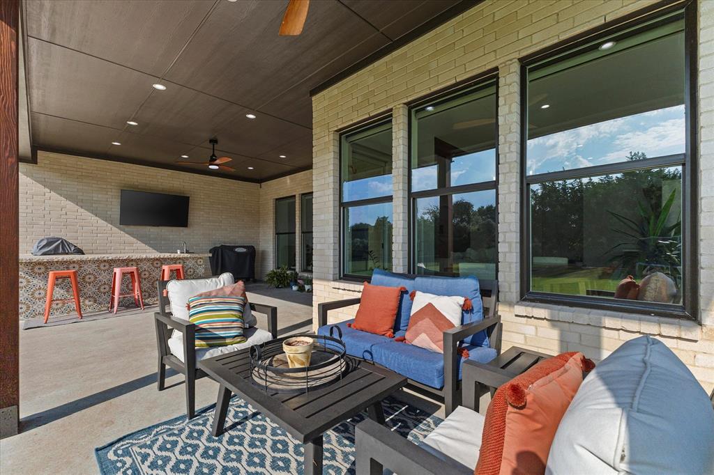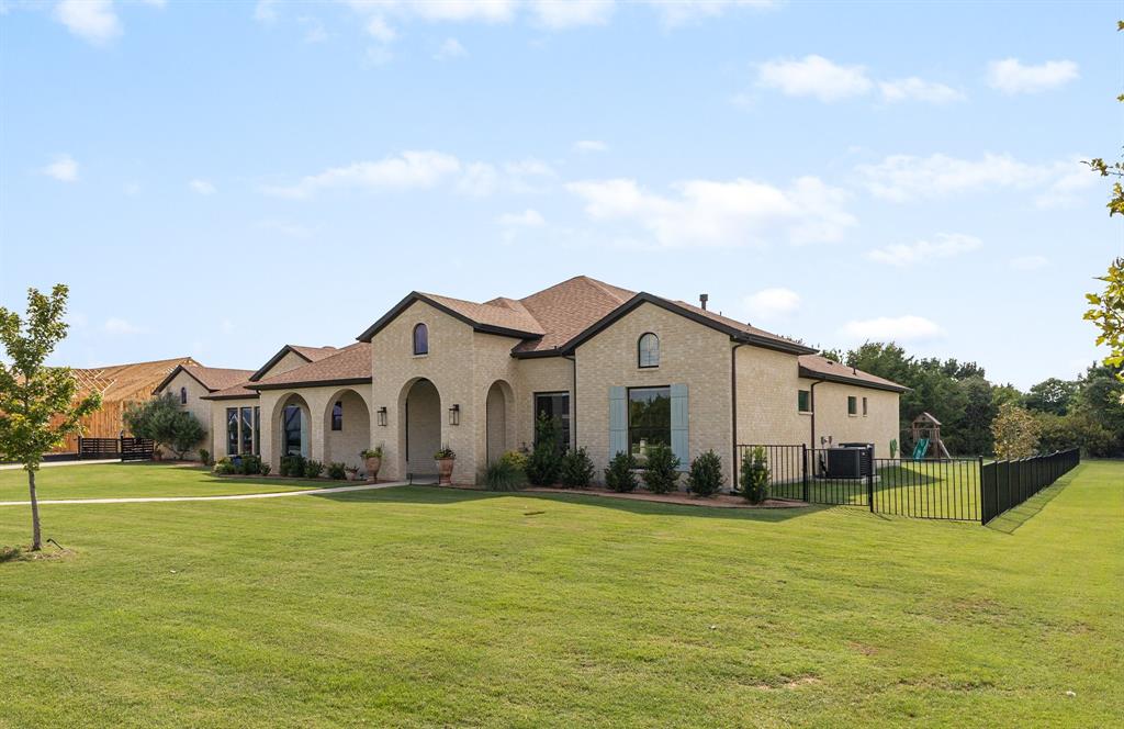Welcome to this stunning custom-built 5 bedroom, 3.5 bath home, completed in 2022, tucked away in a quiet cul-de-sac within a small, private community and located in the highly acclaimed Rockwall ISD. Designed with comfort, functionality, and style in mind, this sprawling one-story residence sits on almost an acre, offering both privacy and room to grow. A gated driveway welcomes you to the oversized 3-car garage, while an inviting extended front porch sets the tone for the thoughtfully designed interiors. Inside, low-maintenance polished concrete floors flow seamlessly throughout, perfectly complementing the home’s high-end fixtures and finishes. Walls of windows at the front and back of the home fill the spaces with abundant natural light, creating a warm and open feel. The flexible floor plan was crafted for both families and entertaining, featuring a large game room, versatile flex space that could be media room or office space, and spacious living room that flows effortlessly into the gourmet kitchen. The kitchen boasts generous counter space, premium appliances, and an oversized island ideal for gatherings. Step outside to enjoy the expansive covered patio, complete with an outdoor living area and kitchen—perfect for dining al fresco or relaxing while overlooking the meticulously maintained lawn and professional landscaping. With its combination of luxury, practicality, and thoughtful design, this property offers the best of space and modern convenience, all within minutes of Heath shopping, dining, and lake access.