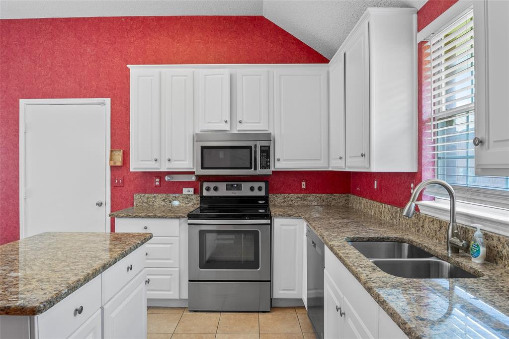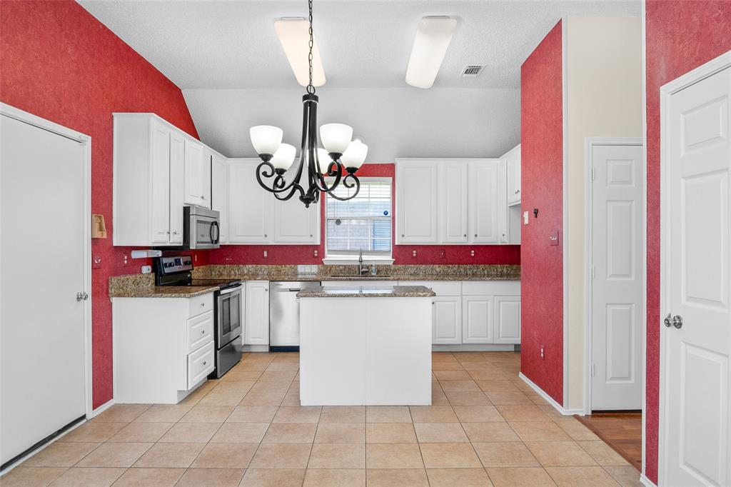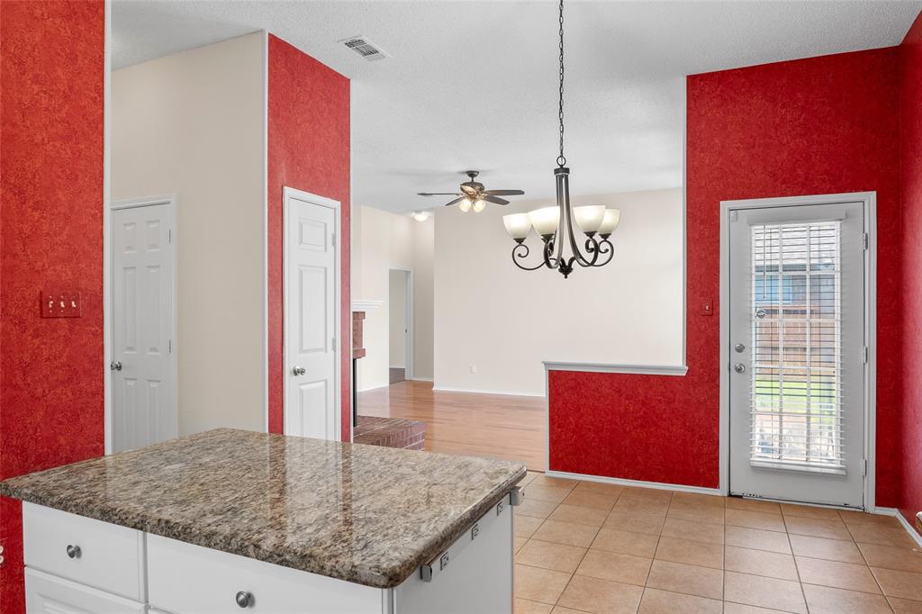 dining and kitchen spaces. The kitchen boasts granite countertop, modern appliances,