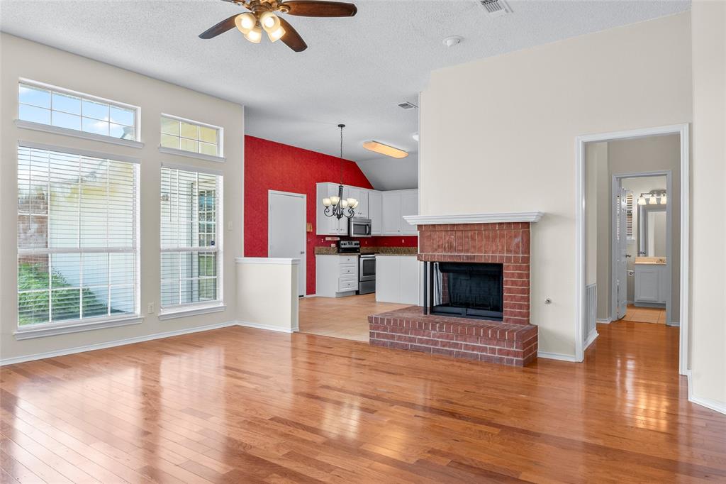 area with abundant natural light, a cozy fireplace, and seamless flow into the