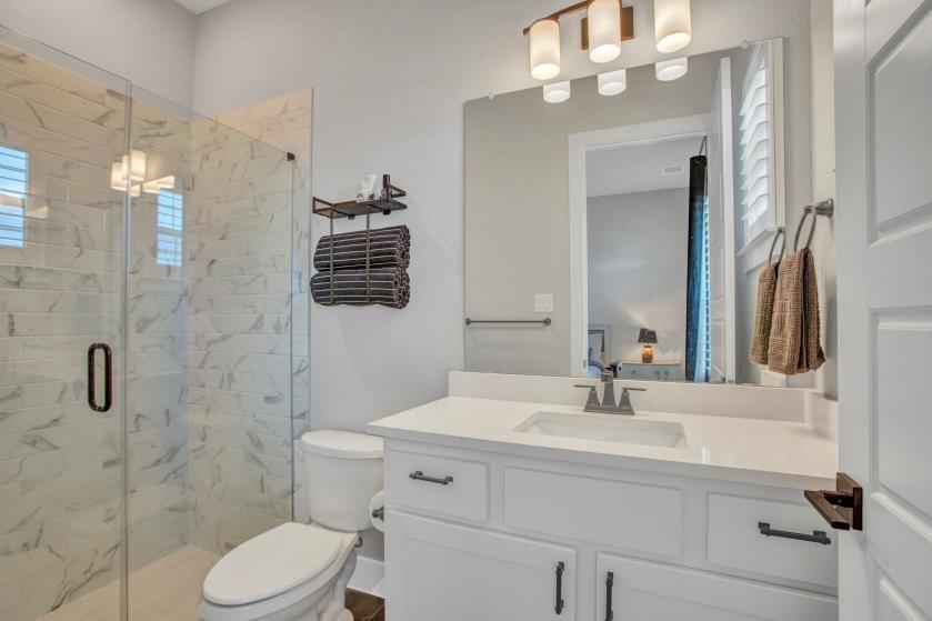 The main floor features both the private primary retreat and a guest suite, while upstairs offers three additional bedrooms and generous living spaces. The primary suite pampers with a freestanding soaking tub, oversized glass shower, and dual vanities.