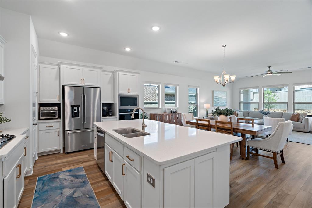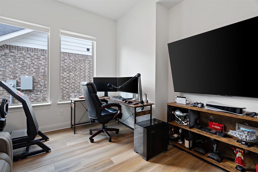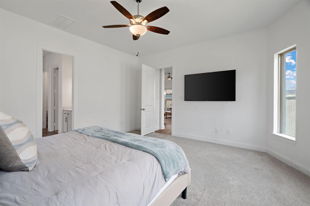 Welcome to Pecan Square in Northlake, where lifestyle and community come together! This stunning 4-bedroom COVENTRY home with a dedicated office and 3 full bathrooms was built in 2023 and offers 2,505 sq. ft. of thoughtfully designed living space. The open layout is filled with natural light, and select rooms feature electric window coverings for ease and comfort. The spacious backyard and attached 2-car garage make this home as functional as it is inviting.
